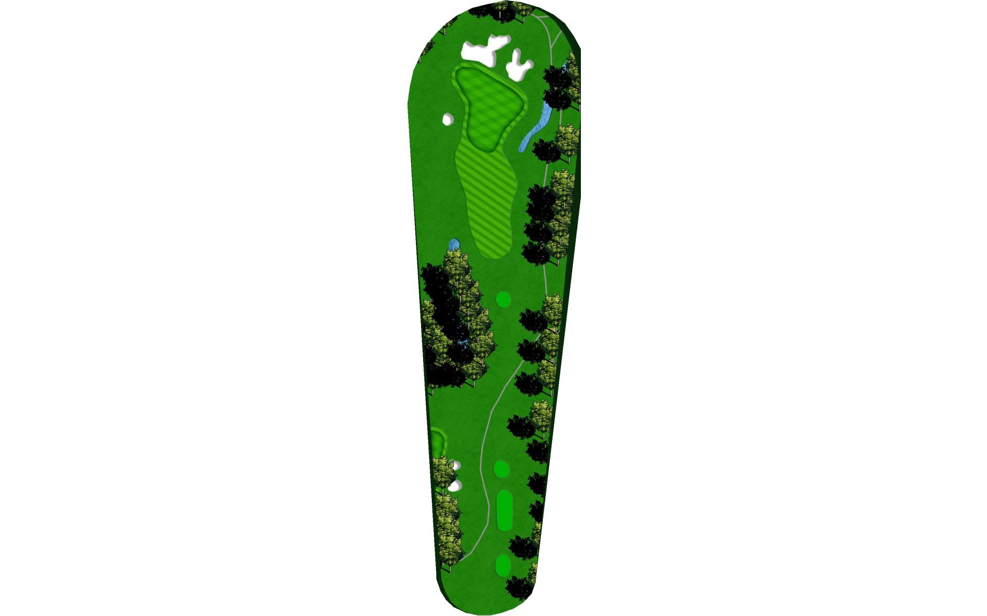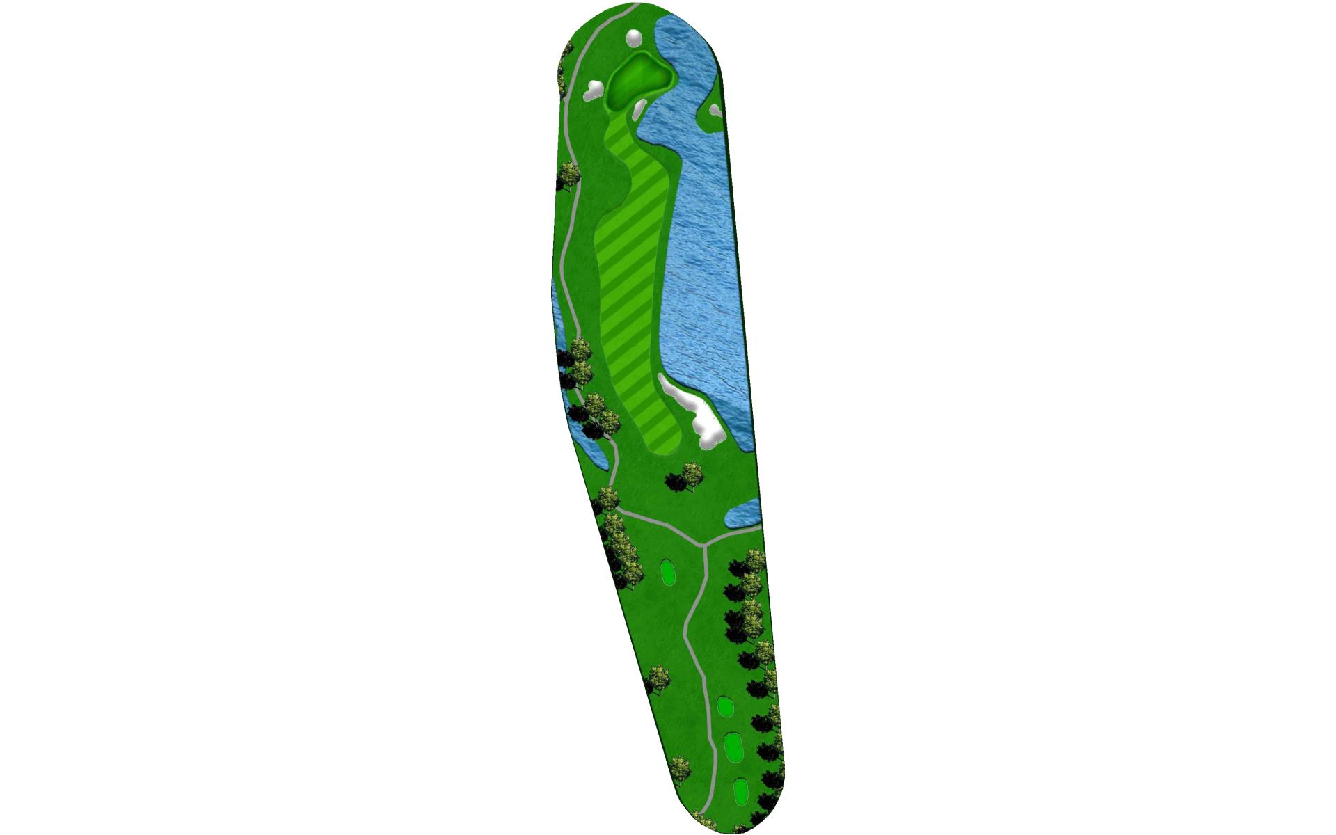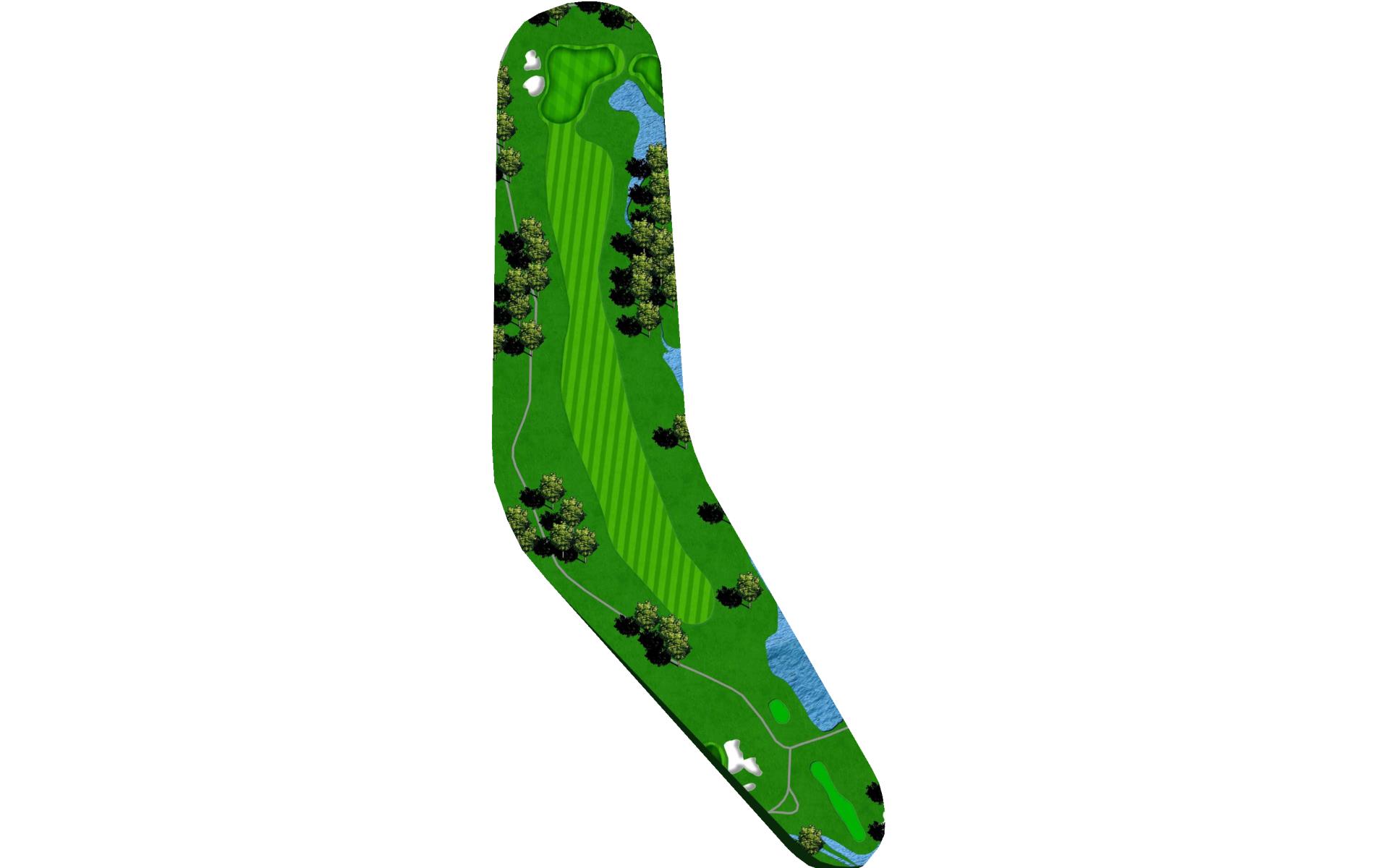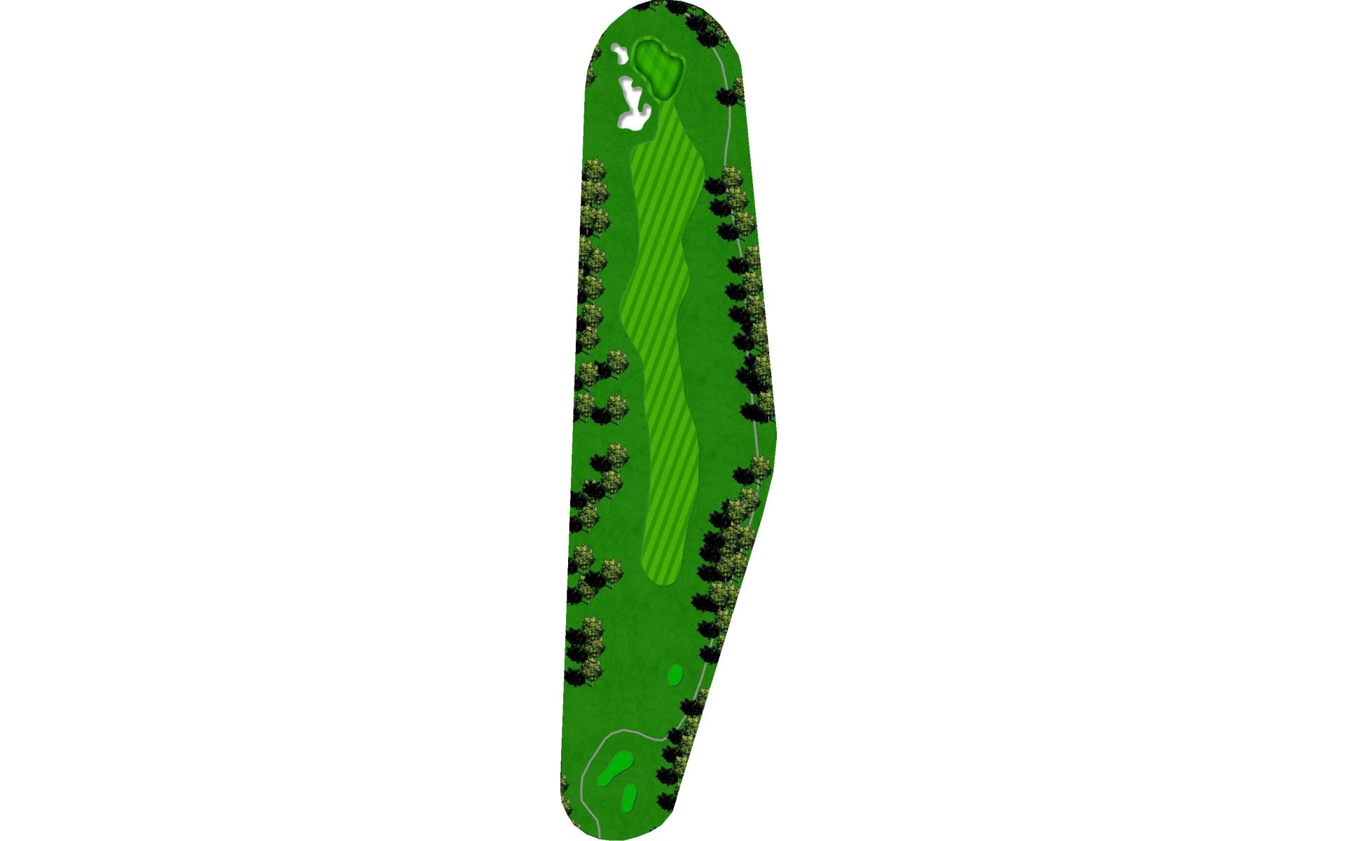 Long par 5. Driver or 3 metal off the tee is the play on this long Par 5. A pond about 270 yards out comes into play with any tee shots that miss the fairway on the right side. Another pond begins on the left side of the fairway roughly 200 yards away from the green and wraps around the left side to the back of the green. Layups must be positioned correctly as water comes into play on both your 2nd and 3rd shots.