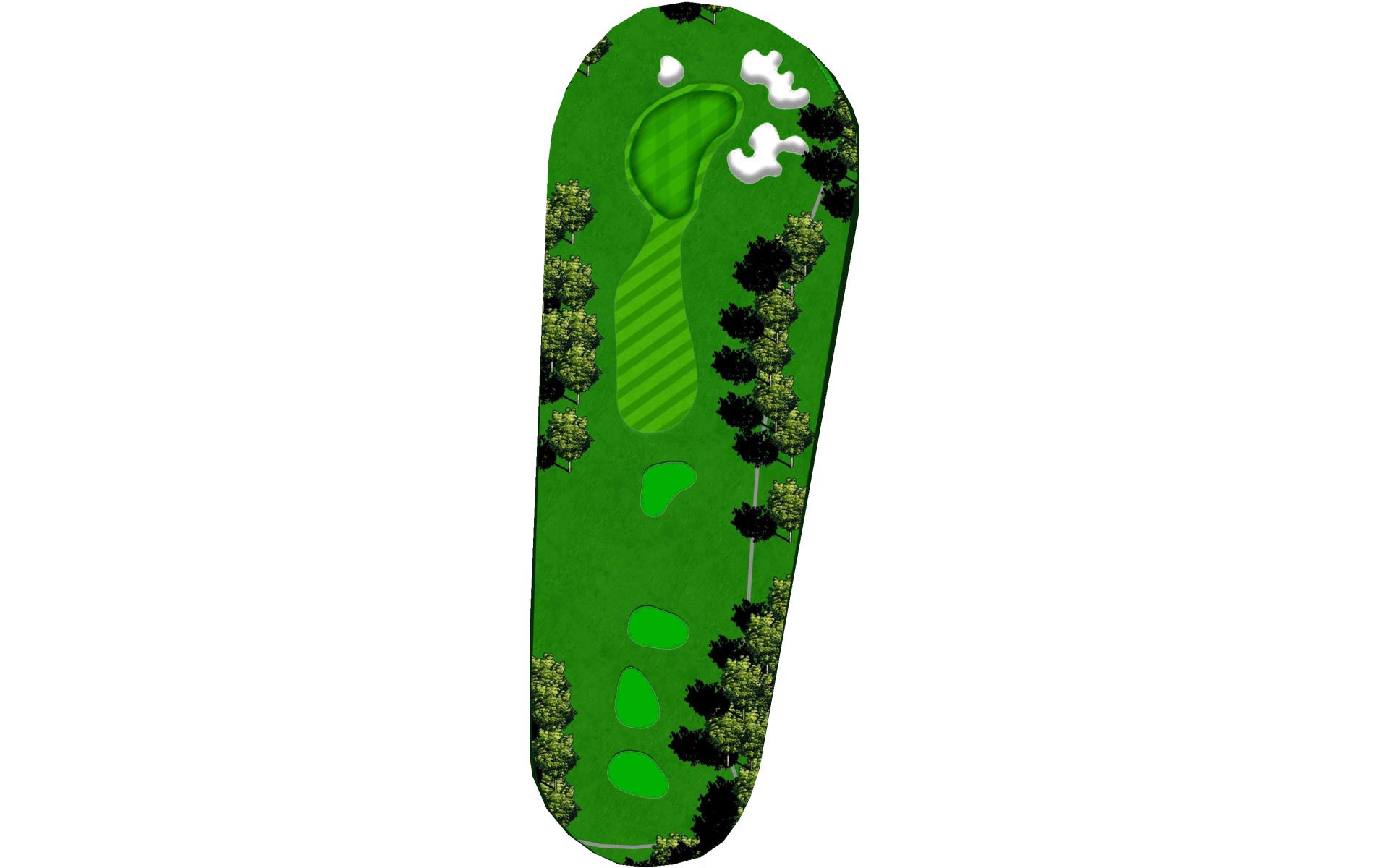 Downhill par 3. Bunkers short right and long middle surround the green. A multi tiered green sits down from the tee box. Hitting the green is a must as an up and down around the green is not the easiest of tasks.
