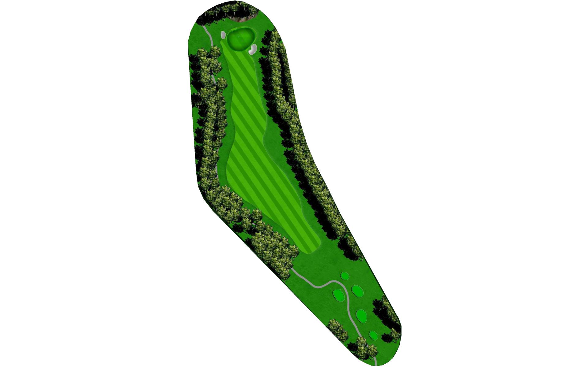 Keep it straight off the tee on this Par 4. Thick woods on the right and tree trouble left make this one of the most challenging tee shots on the course.