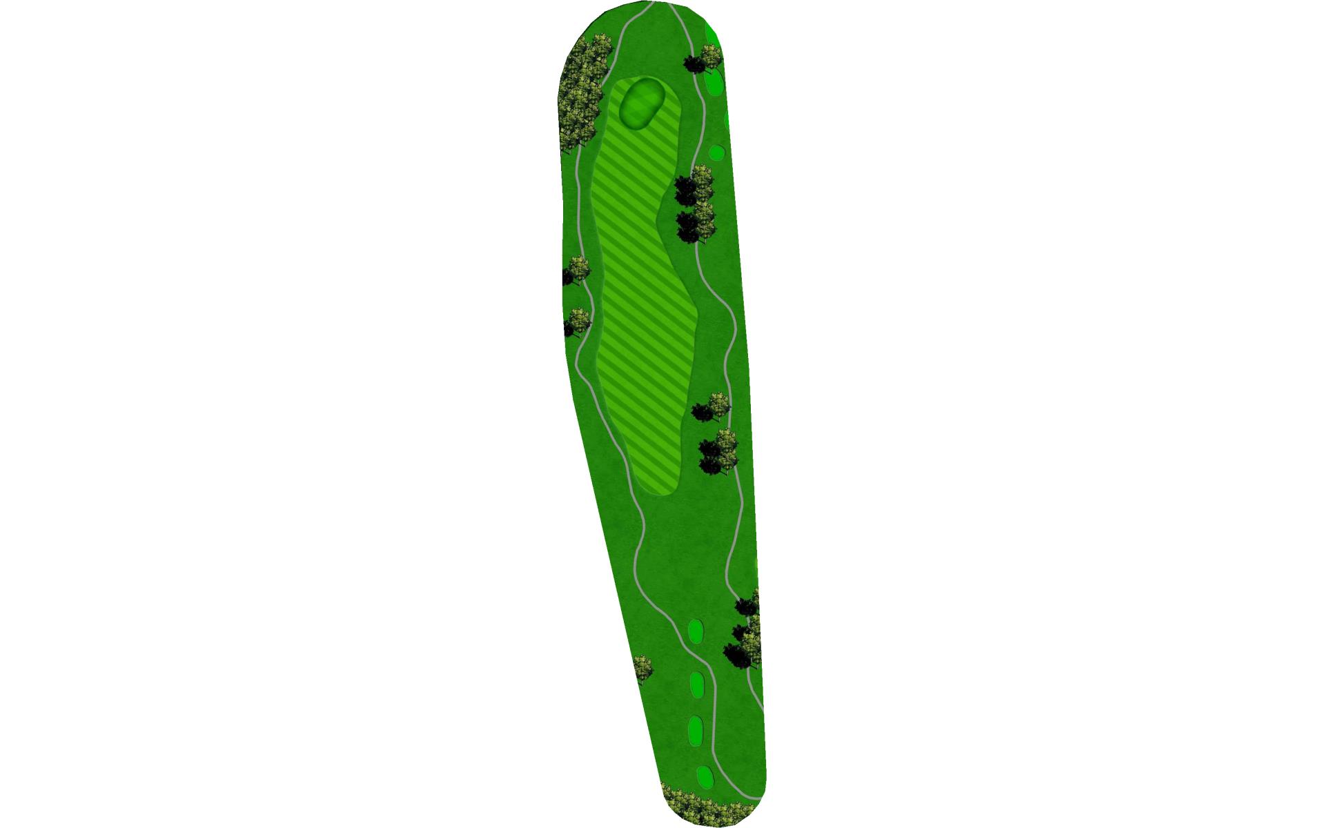 This hole does not play long but the dogleg comes so late that fading the ball is not to your advantage. Stay left for a good approach angle to this treacherous green.