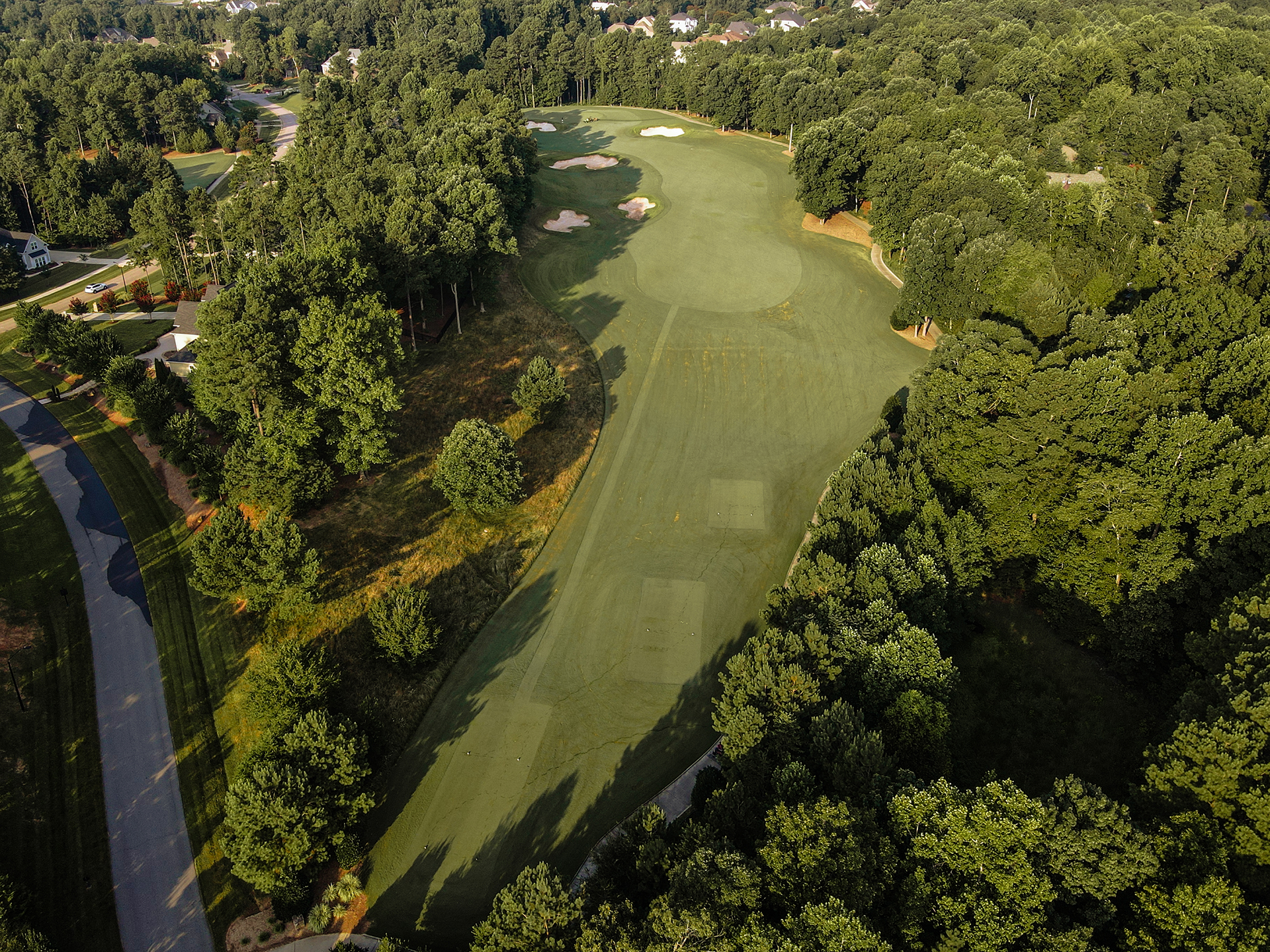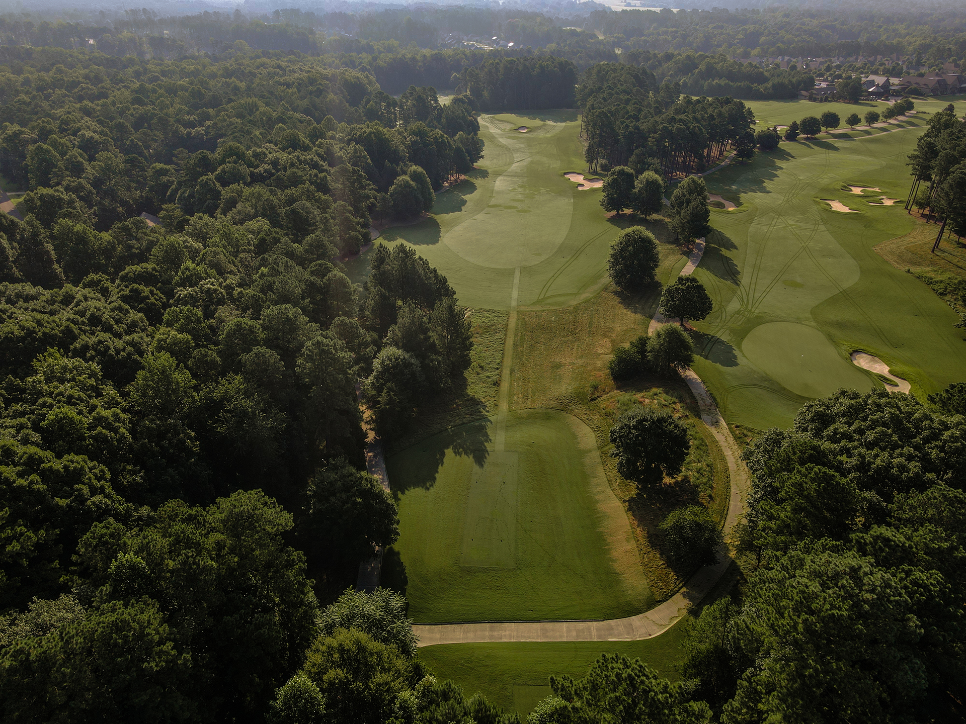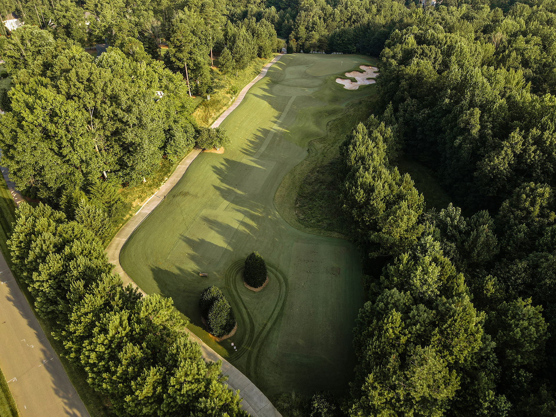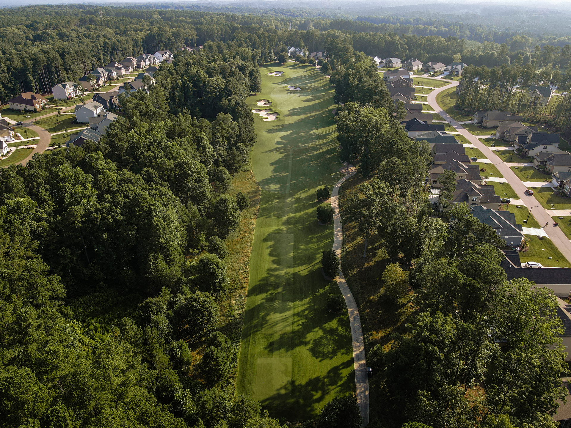 Your Hasentree round begins with a 466-yard par-4 and closes with an uphill 472-yarder that plays longer than measured. Tom Fazio designed our course with unique features: a double green on the 10th hole and five par-3s, including one that measures 238 yards from the tips. Three of the four par-5s are reachable in two, a stimulating risk-reward feeling for golfers teeing it up amidst the rolling landscape of North Raleigh. Our course’s 7,074-yard, par-71 layout offers wide fairways and strategically placed 88 steep-faced bunkers in landing areas, tucking them around corners of doglegs and close to slick, sloping greens to test your skill levels.