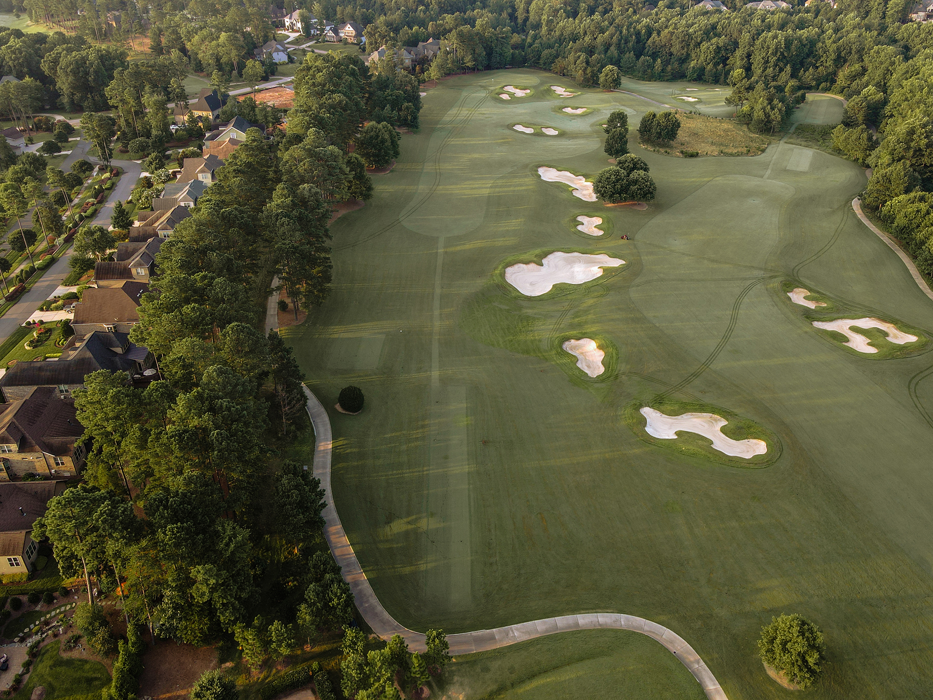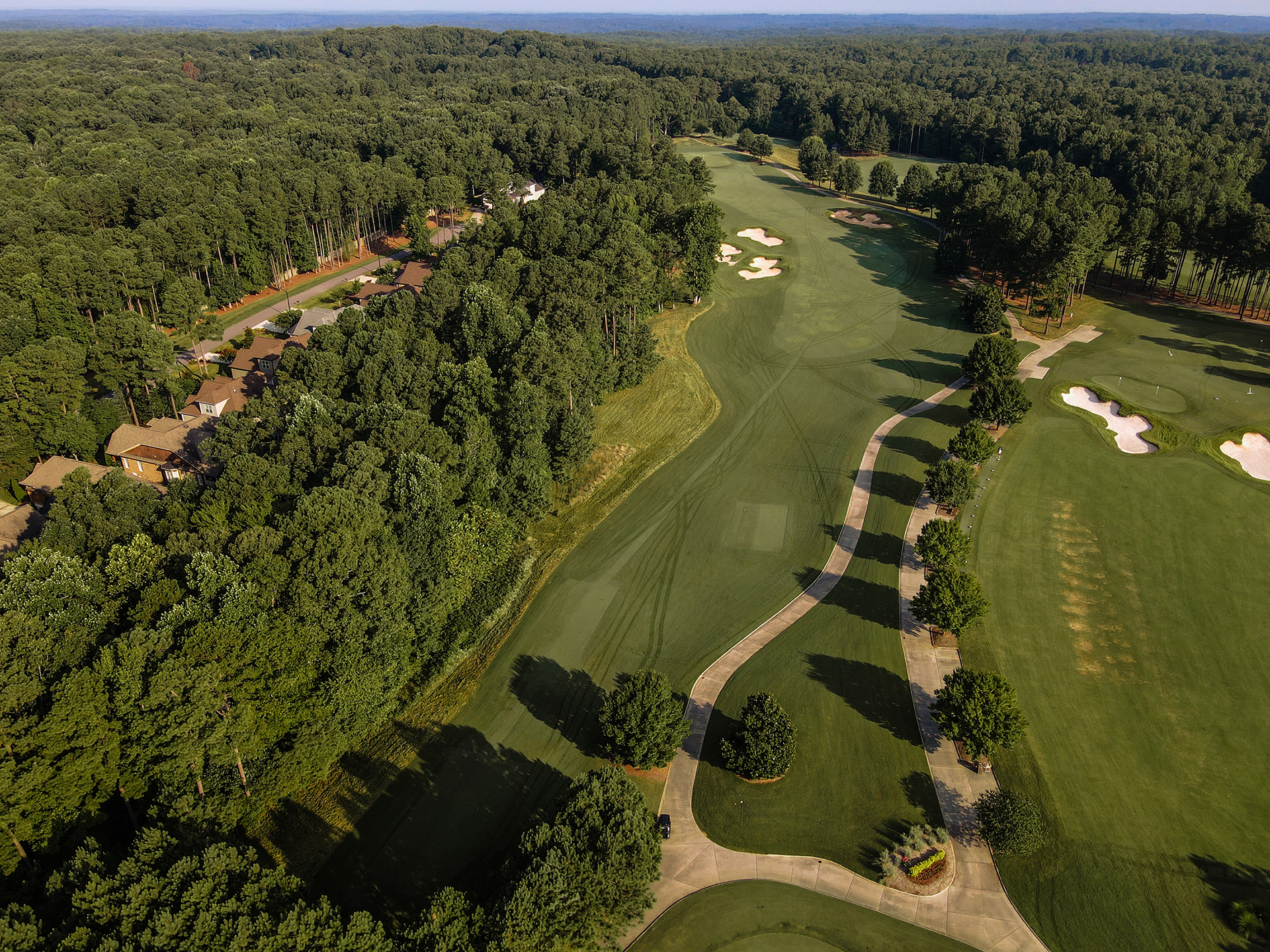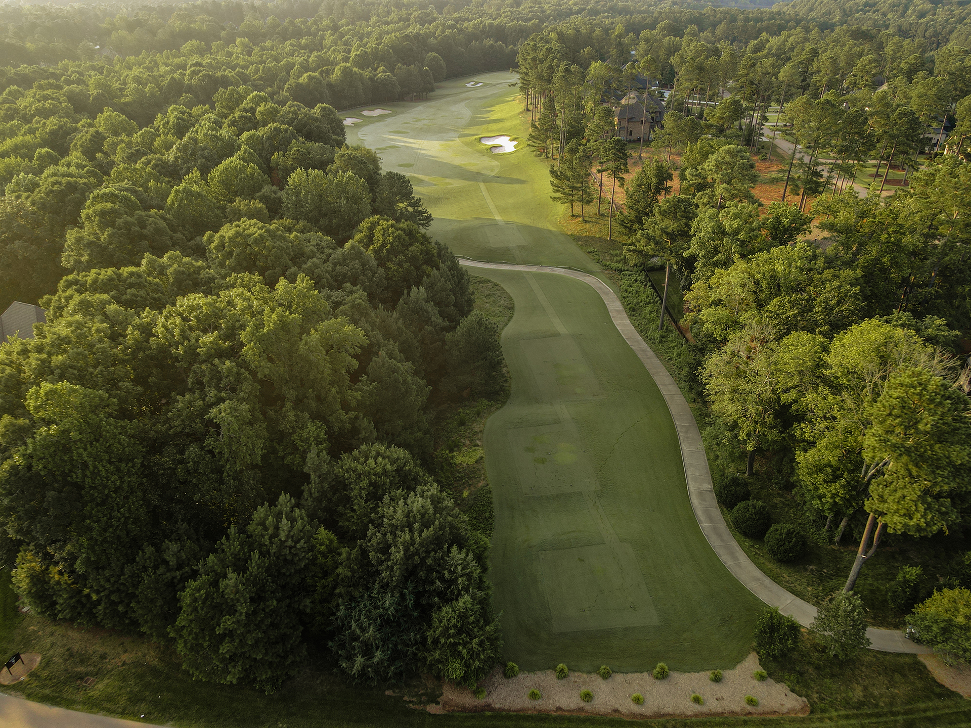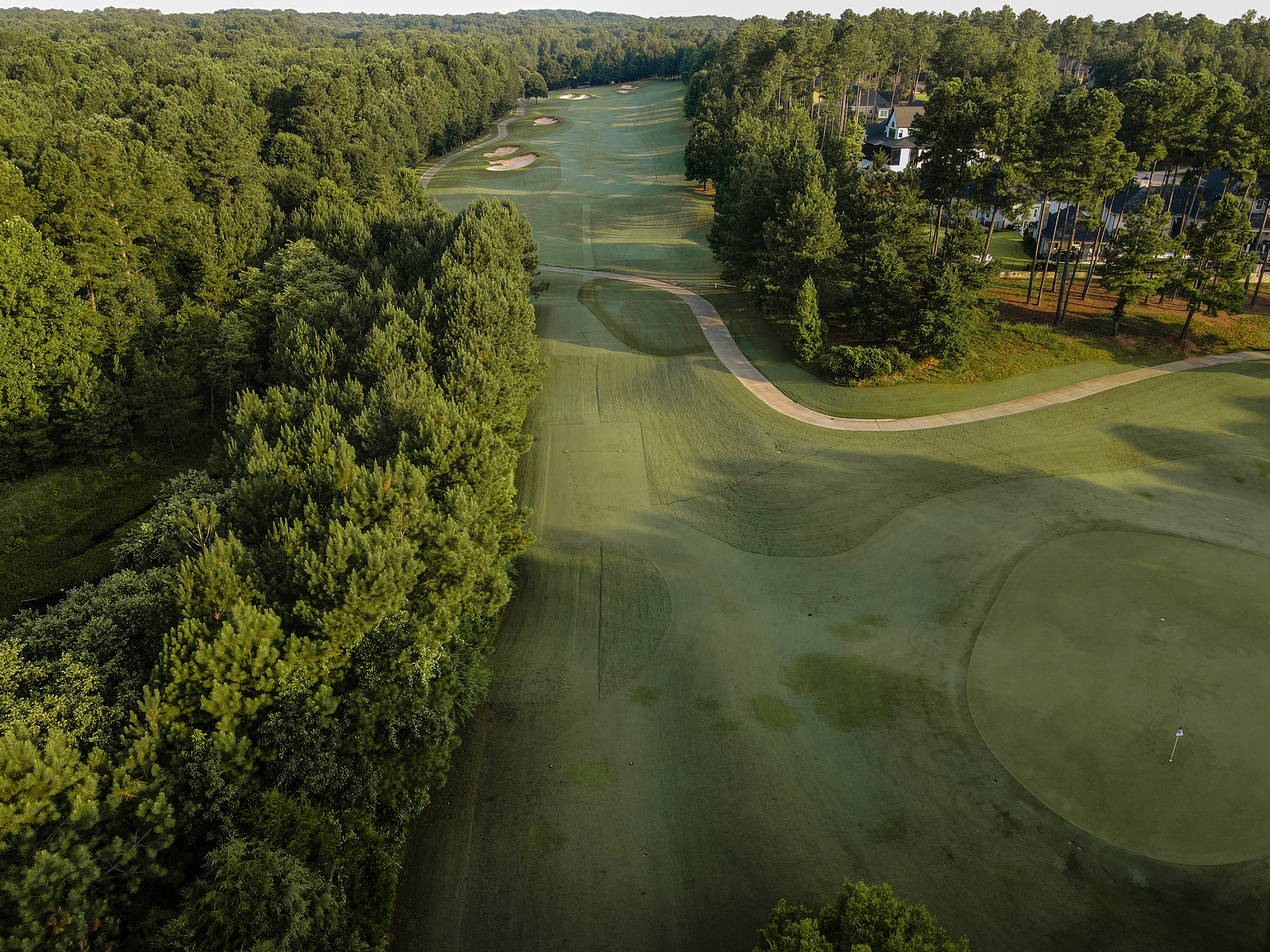 Your Hasentree round begins with a 466-yard par-4 and closes with an uphill 472-yarder that plays longer than measured. Tom Fazio designed our course with unique features: a double green on the 10th hole and five par-3s, including one that measures 238 yards from the tips. Three of the four par-5s are reachable in two, a stimulating risk-reward feeling for golfers teeing it up amidst the rolling landscape of North Raleigh. Our course’s 7,074-yard, par-71 layout offers wide fairways and strategically placed 88 steep-faced bunkers in landing areas, tucking them around corners of doglegs and close to slick, sloping greens to test your skill levels.
