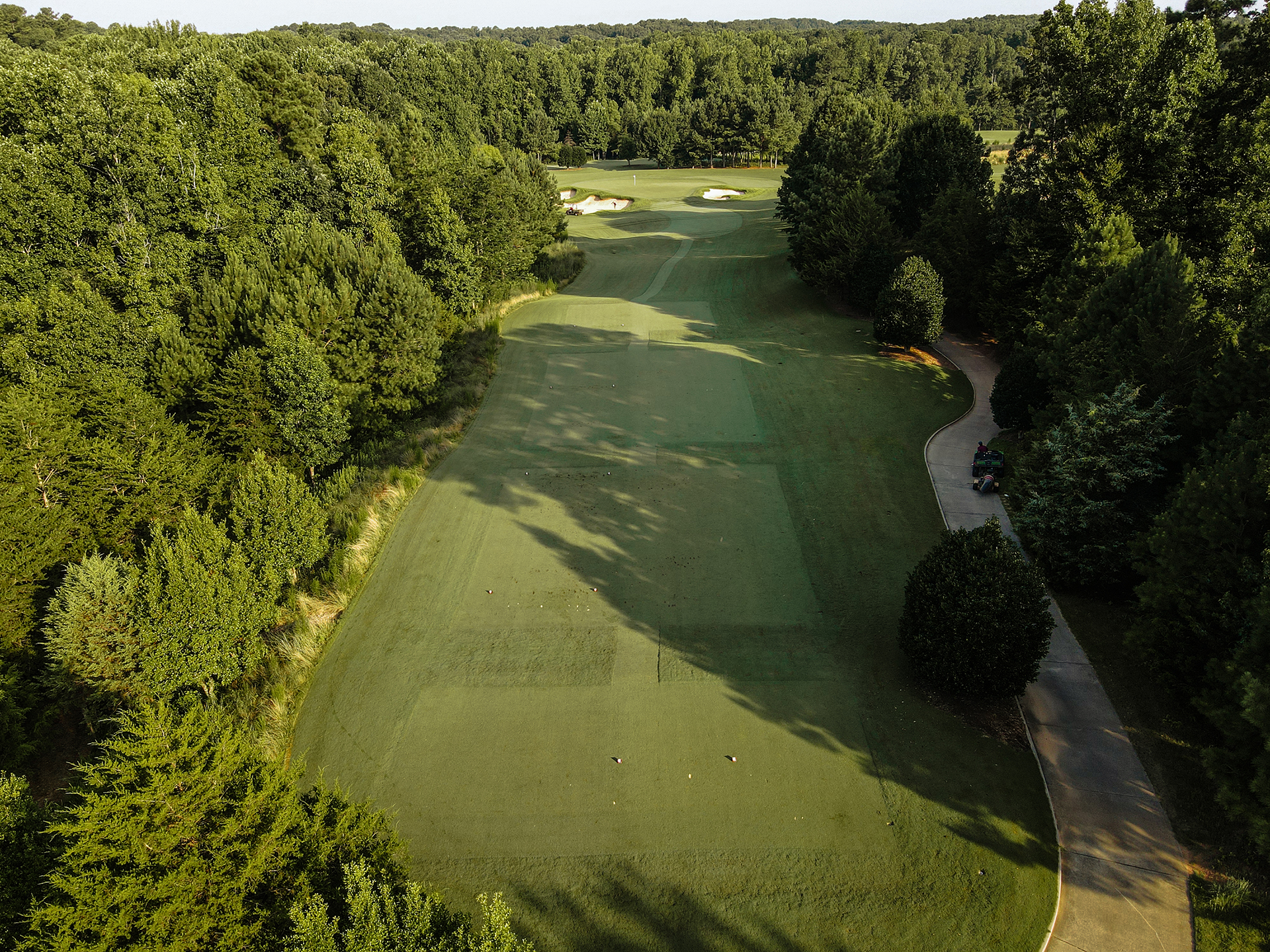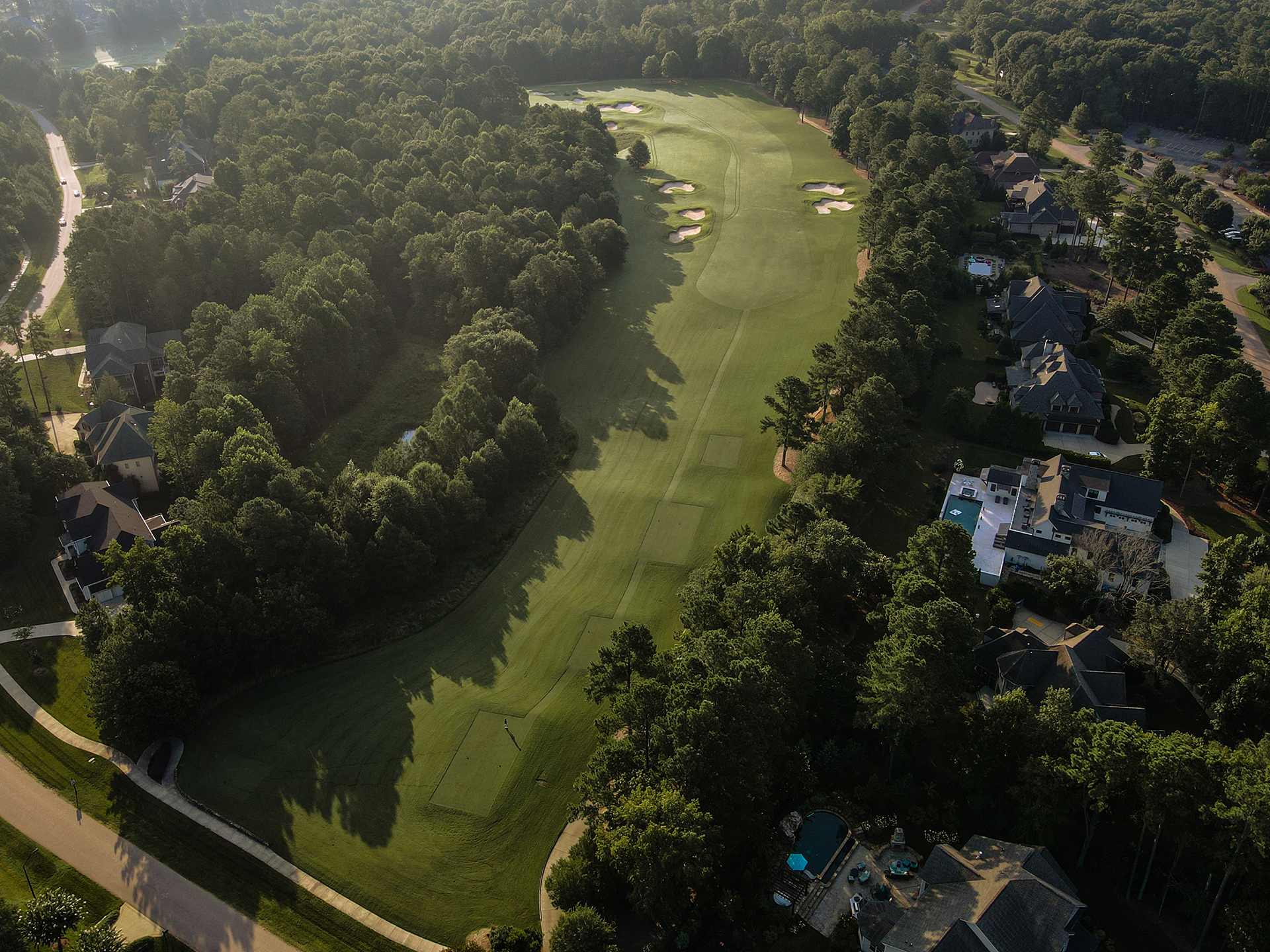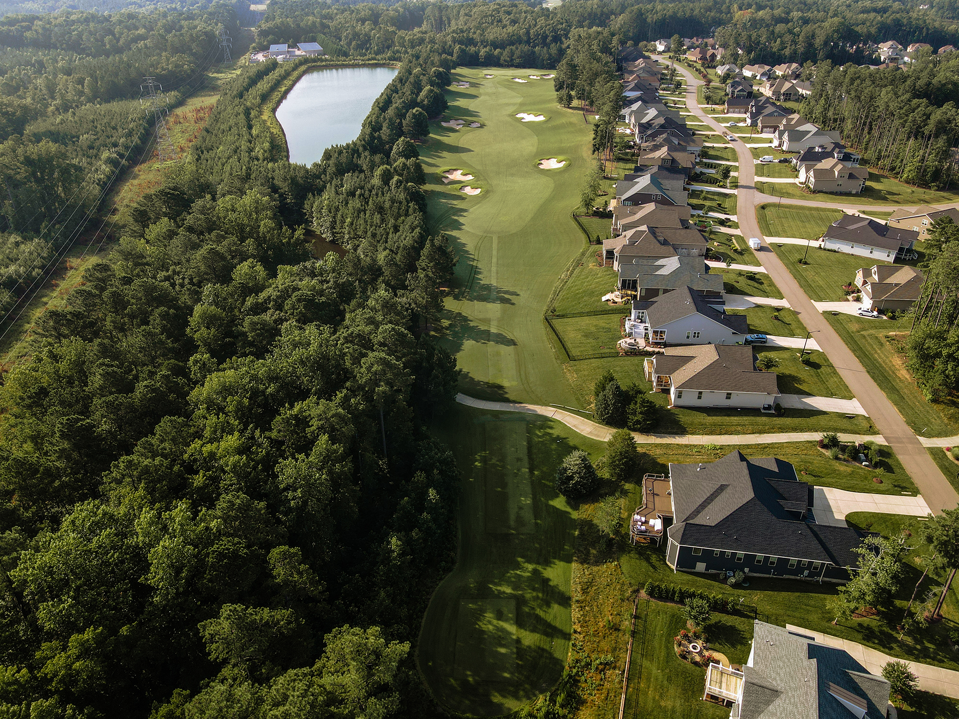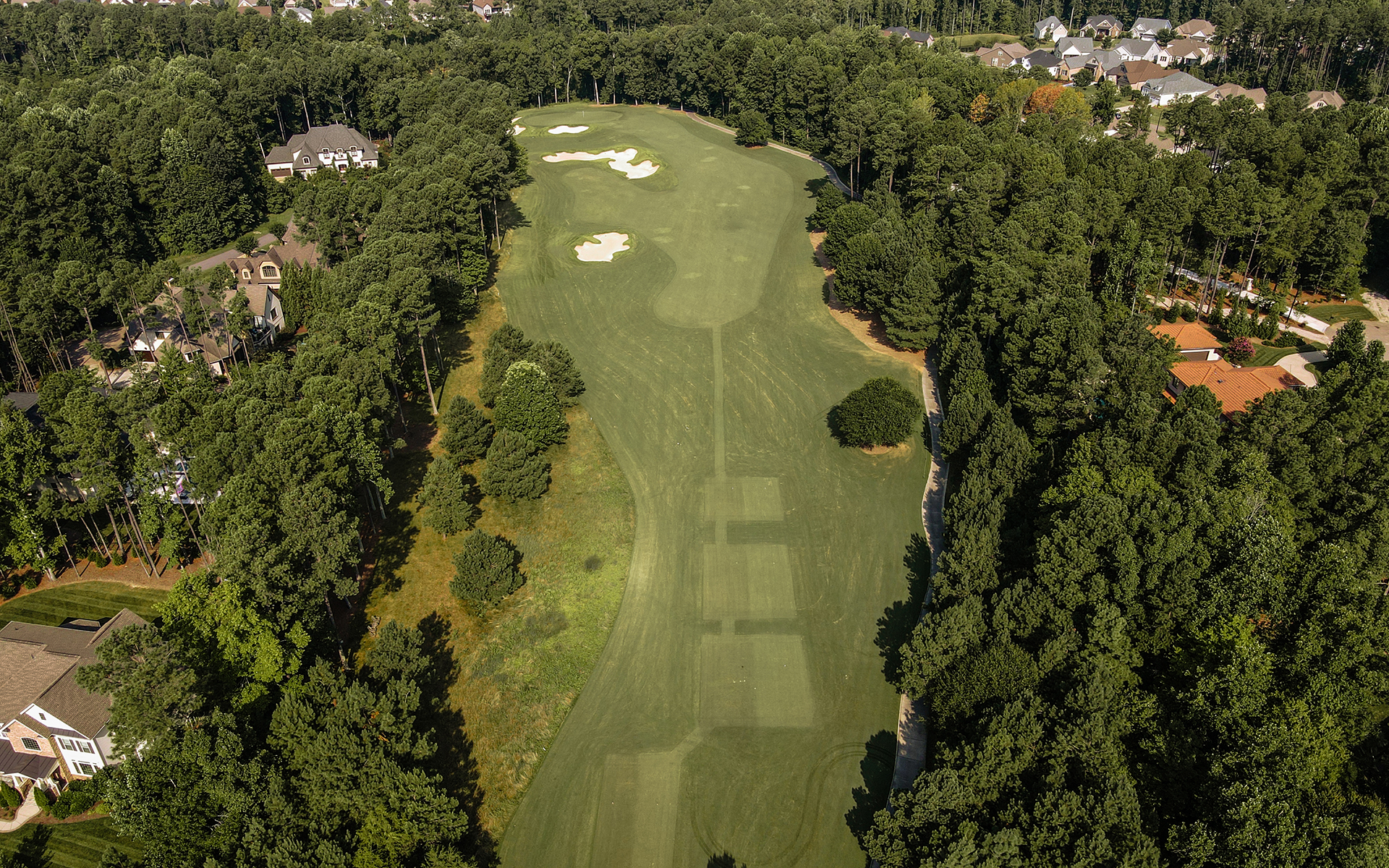 Your Hasentree round begins with a 466-yard par-4 and closes with an uphill 472-yarder that plays longer than measured. Tom Fazio designed our course with unique features: a double green on the 10th hole and five par-3s, including one that measures 238 yards from the tips. Three of the four par-5s are reachable in two, a stimulating risk-reward feeling for golfers teeing it up amidst the rolling landscape of North Raleigh. Our course’s 7,074-yard, par-71 layout offers wide fairways and strategically placed 88 steep-faced bunkers in landing areas, tucking them around corners of doglegs and close to slick, sloping greens to test your skill levels.