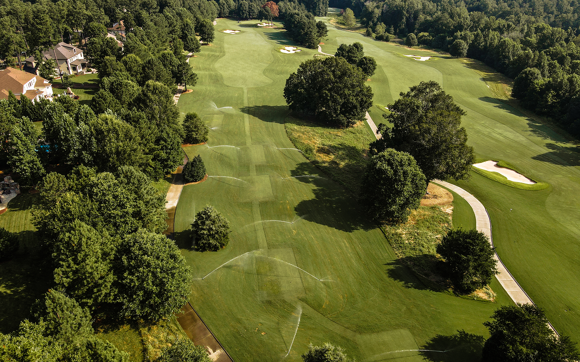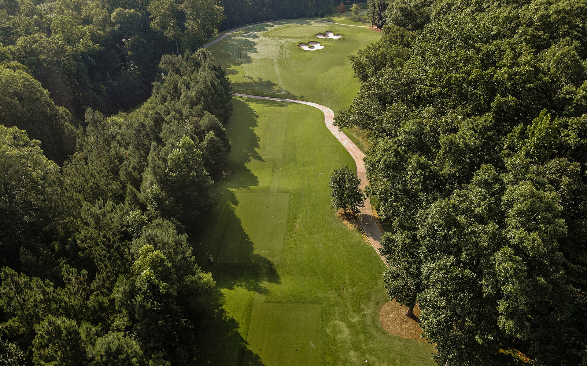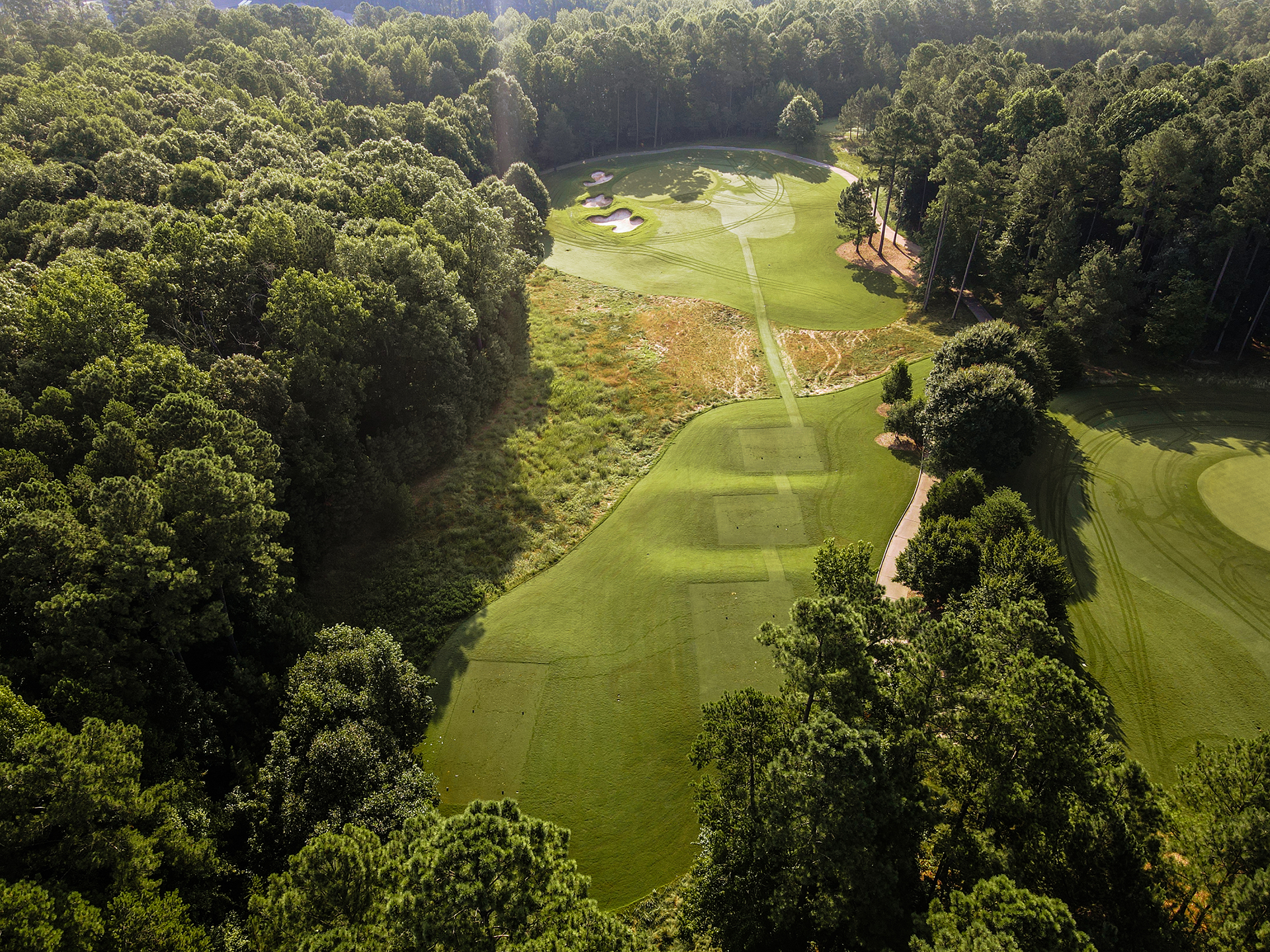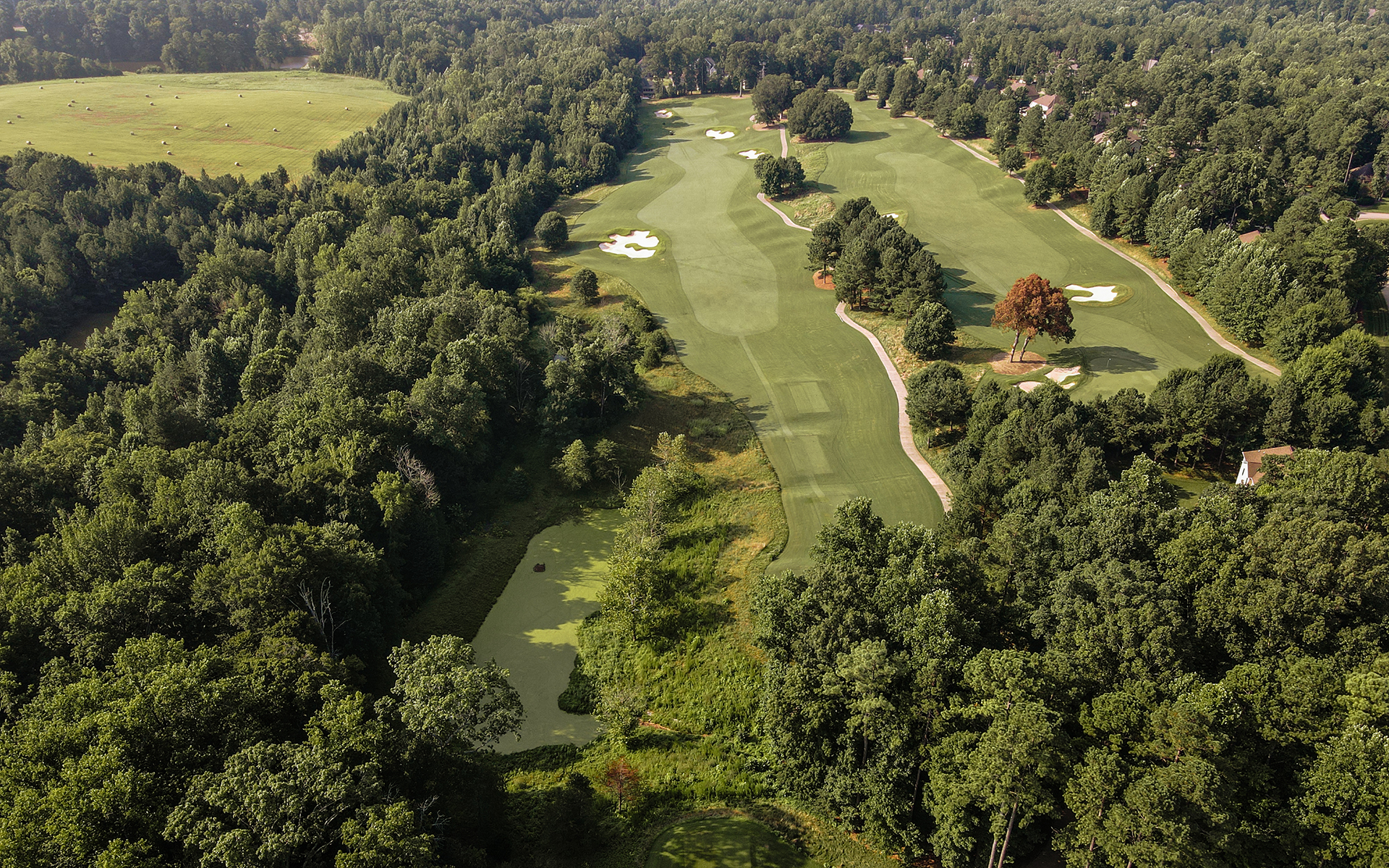 Your Hasentree round begins with a 466-yard par-4 and closes with an uphill 472-yarder that plays longer than measured. Tom Fazio designed our course with unique features: a double green on the 10th hole and five par-3s, including one that measures 238 yards from the tips. Three of the four par-5s are reachable in two, a stimulating risk-reward feeling for golfers teeing it up amidst the rolling landscape of North Raleigh. Our course’s 7,074-yard, par-71 layout offers wide fairways and strategically placed 88 steep-faced bunkers in landing areas, tucking them around corners of doglegs and close to slick, sloping greens to test your skill levels.
