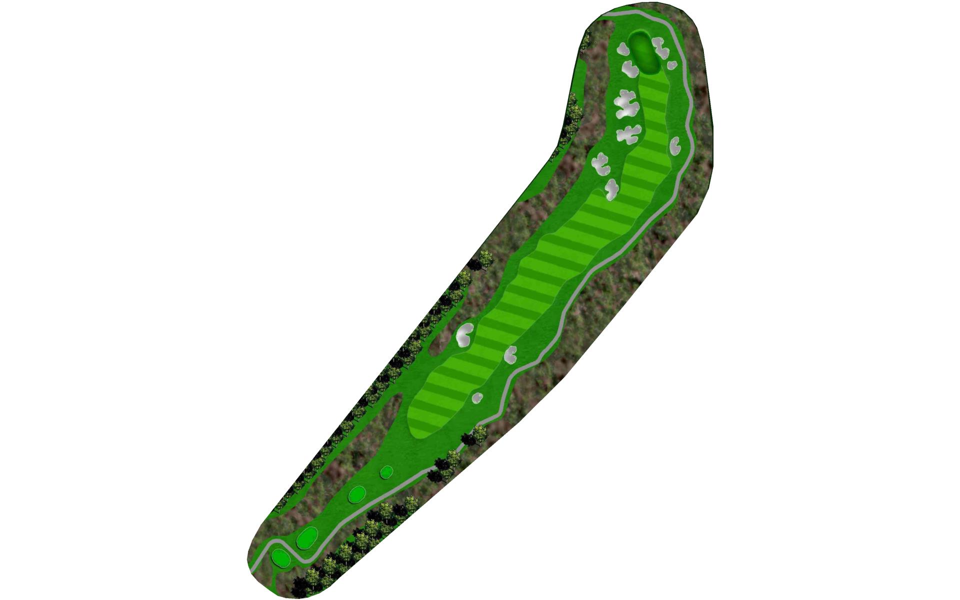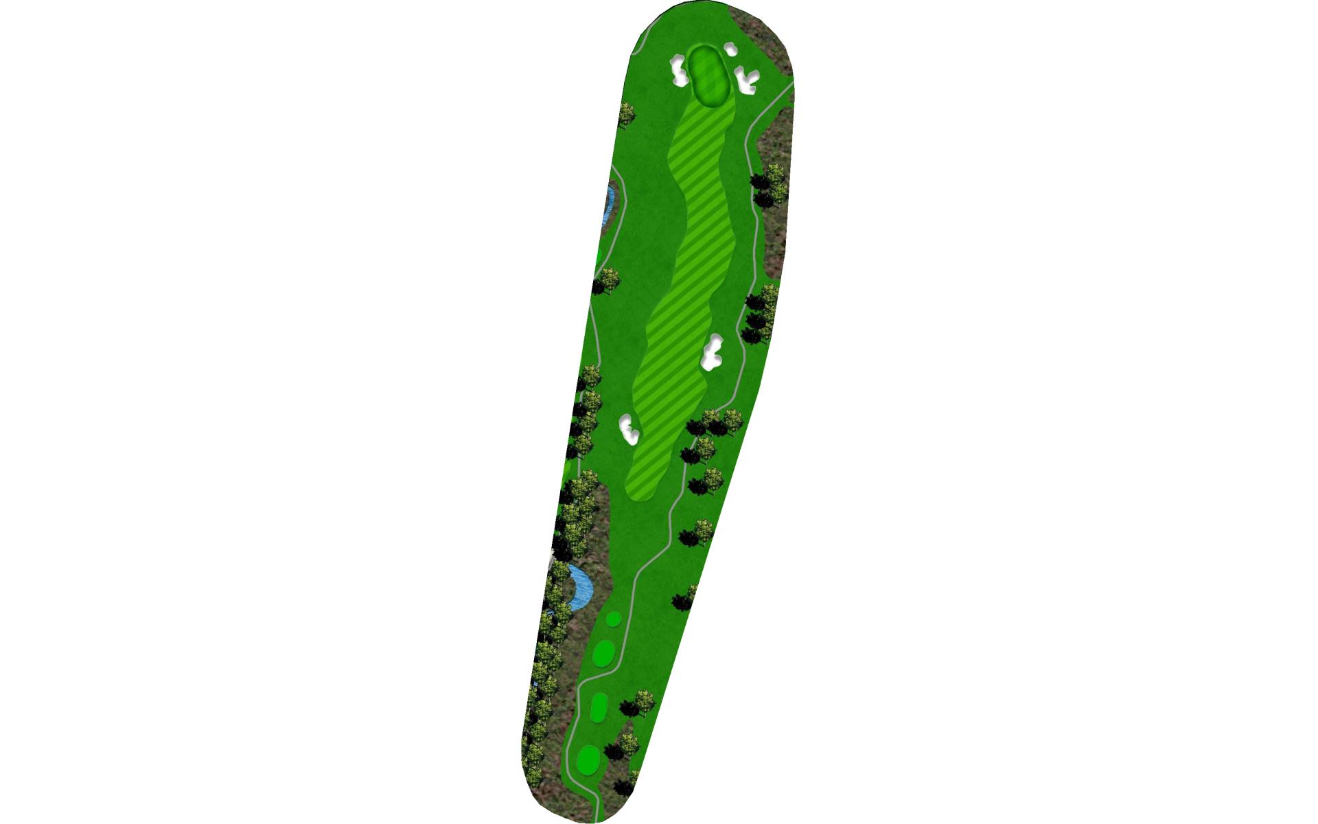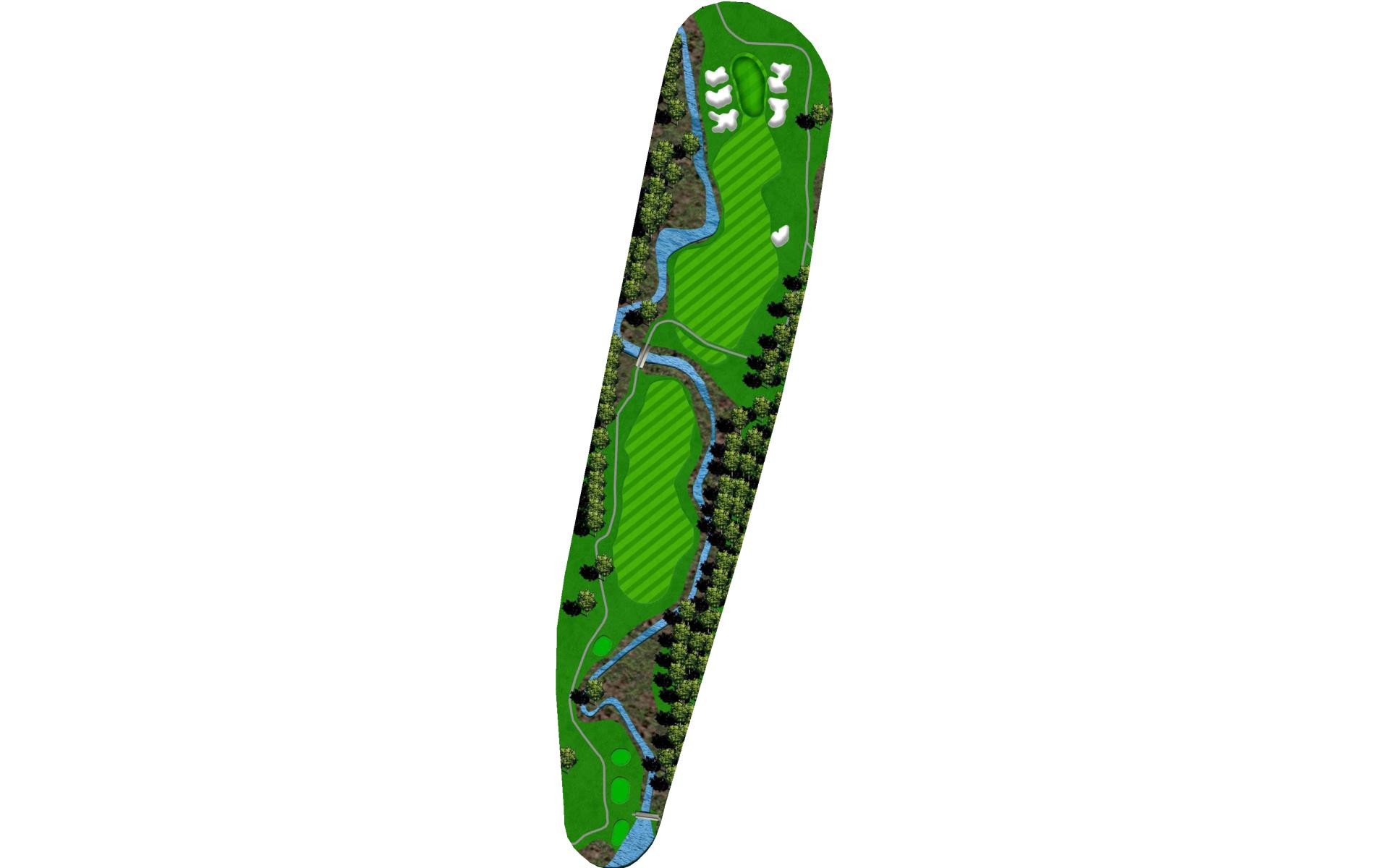 This long par 5 is flanked b the meandering stream. The water is right of the tee shot landing area, then crosses the fairway and must be c…