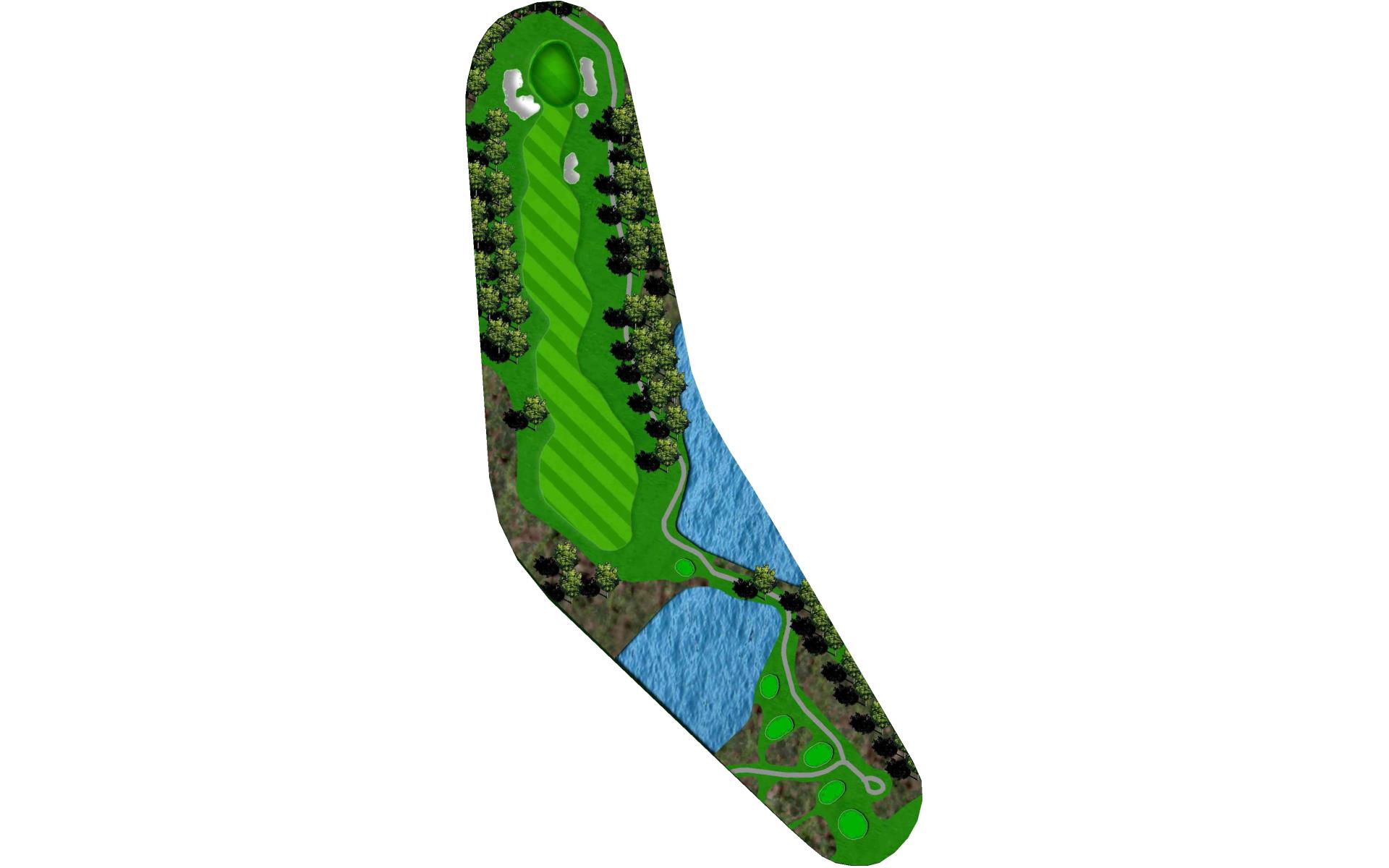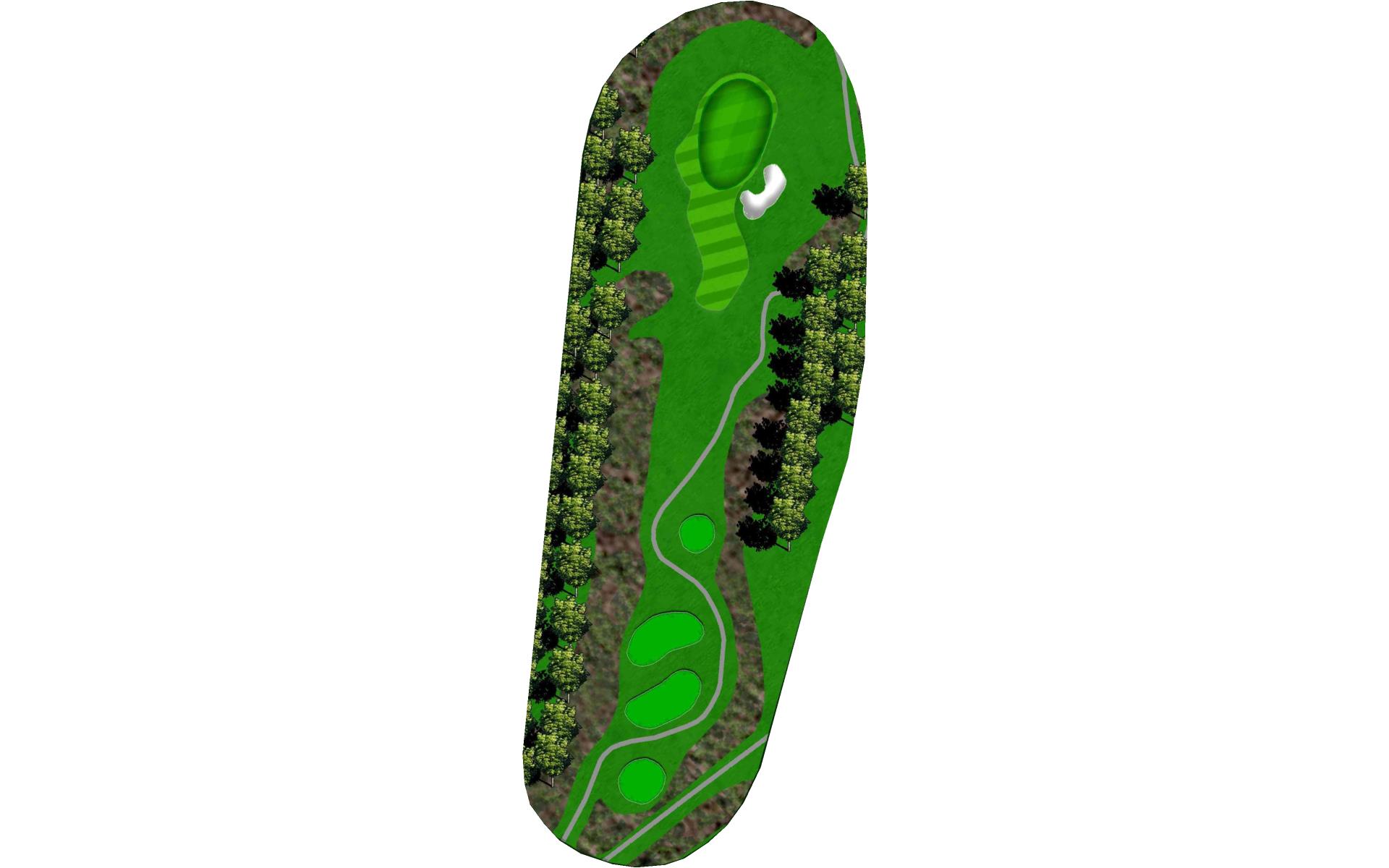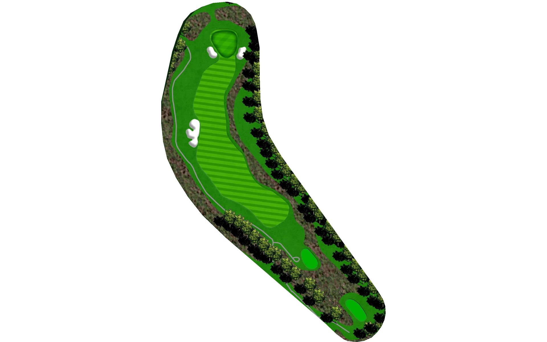 This long par 5 is flanked b the meandering stream. The water is right of the tee shot landing area, then crosses the fairway and must be c…