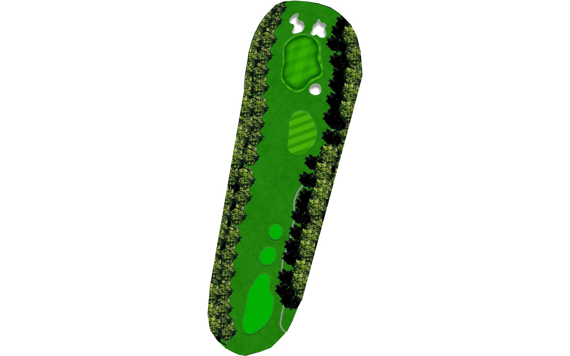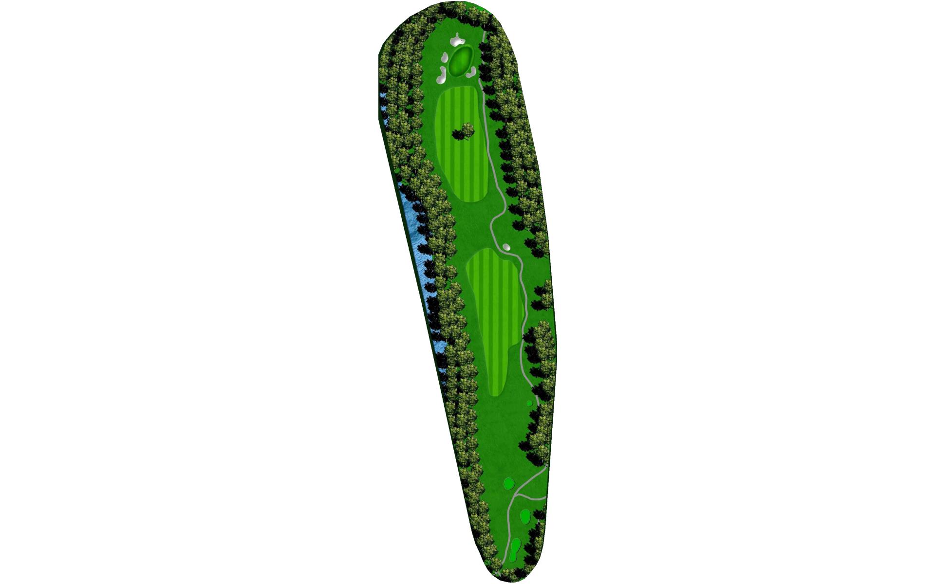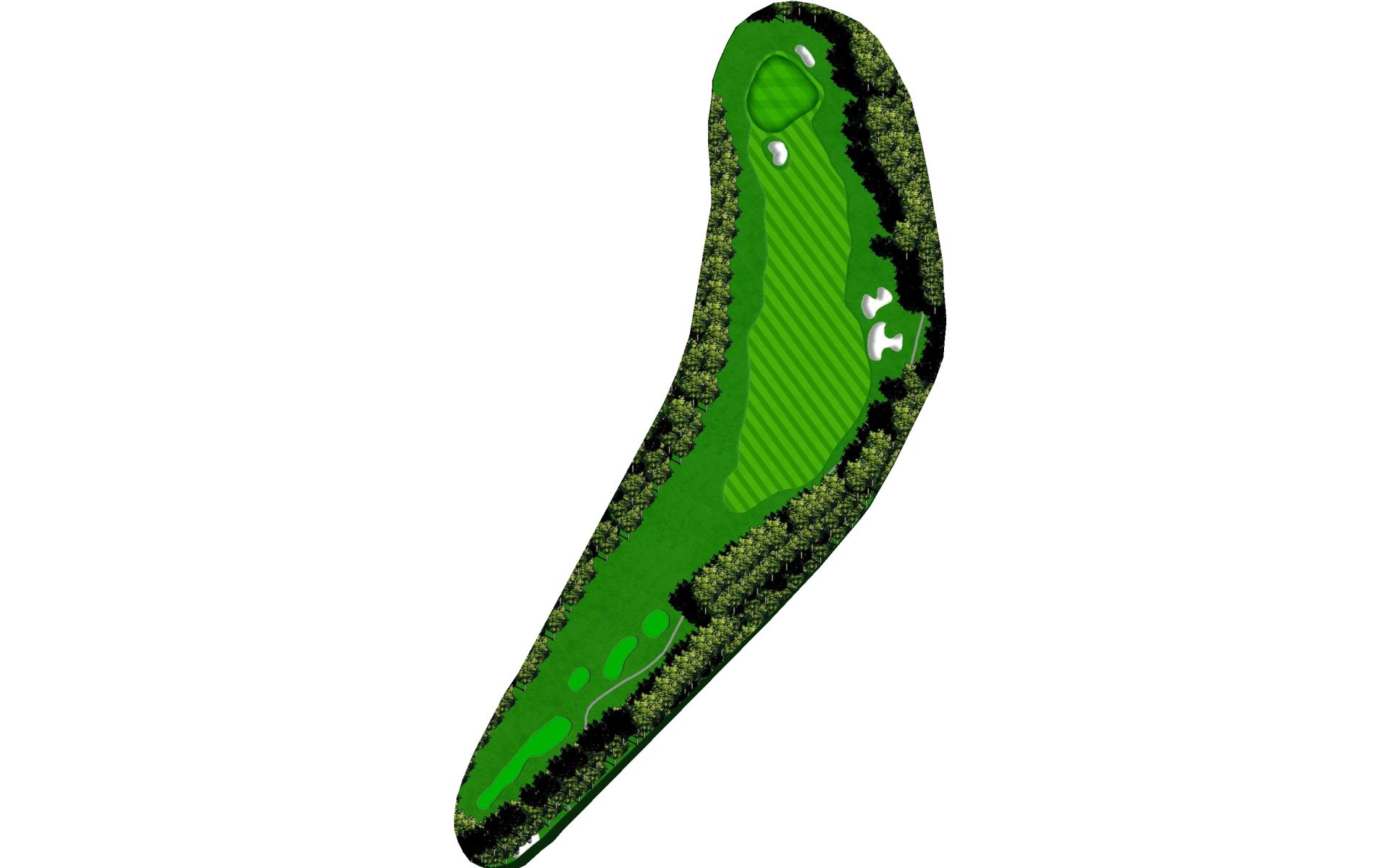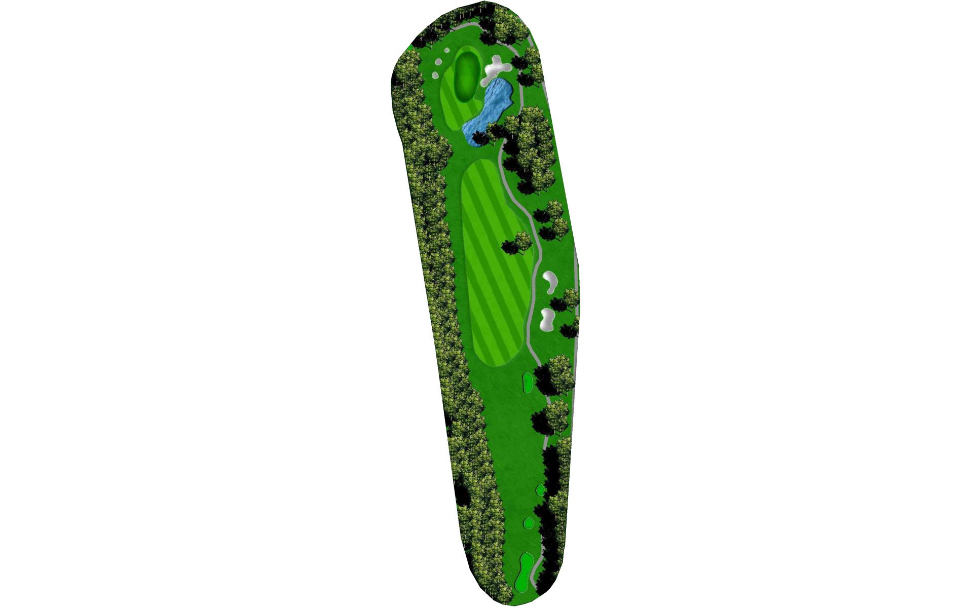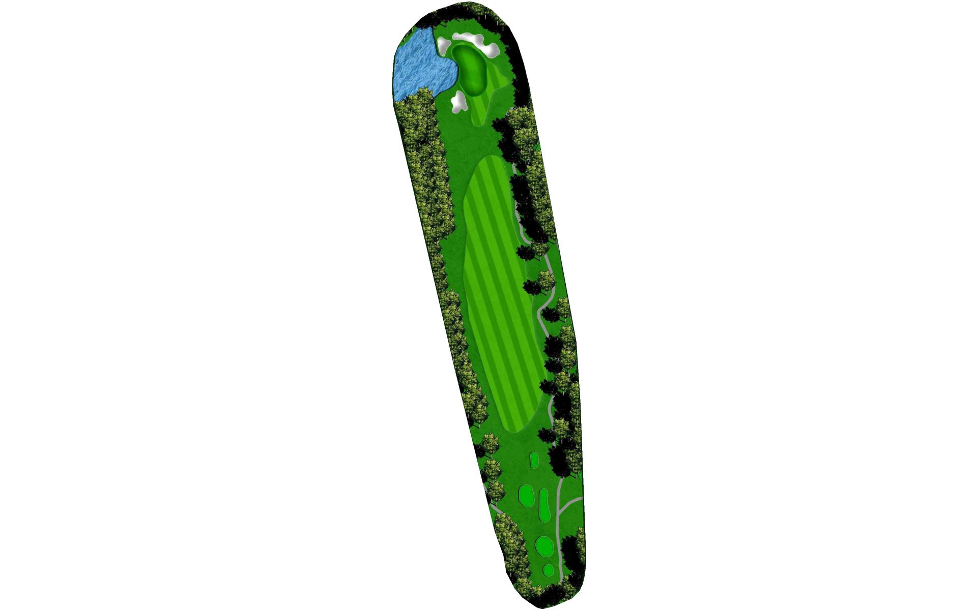 The opening hole is a short par 4 that requires players to hit a blind tee shot over a ridge. Finding the fairway is crucial as it will set up a birdie opportunity. When hitting the approach shot, players must be careful to avoid the pond along the left side of this green that runs away.