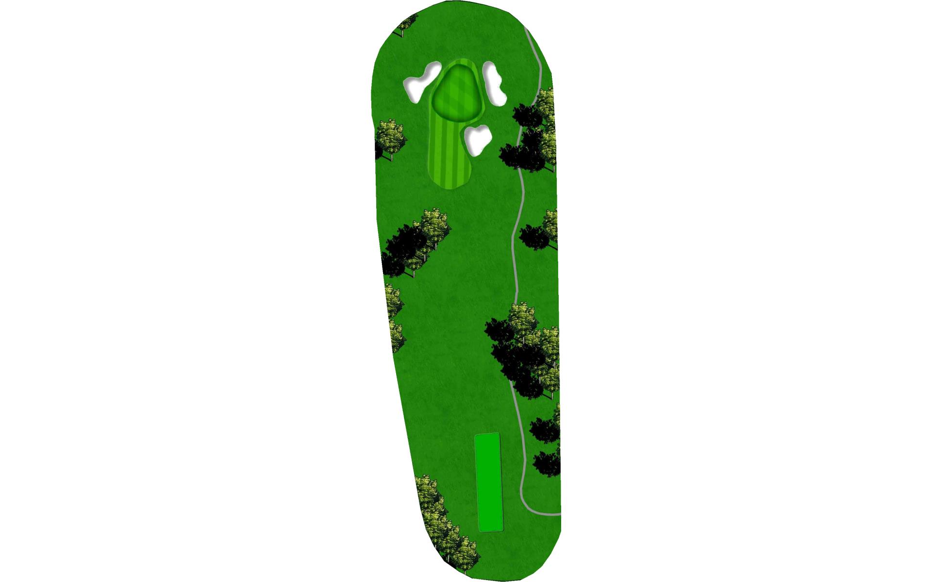 A good drive here could seem tempting to go for it, but this green is surrounded by an army of Hogan’s bunkers that won’t let you in. Lay up to the right of the trees for the best angle to the pin.