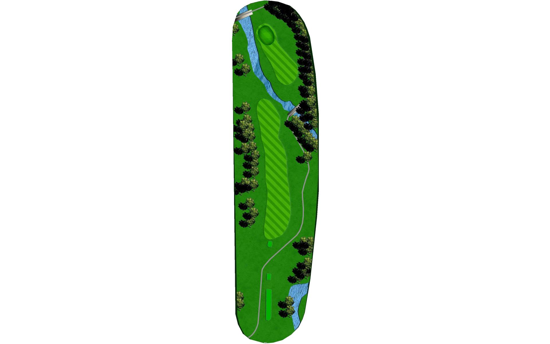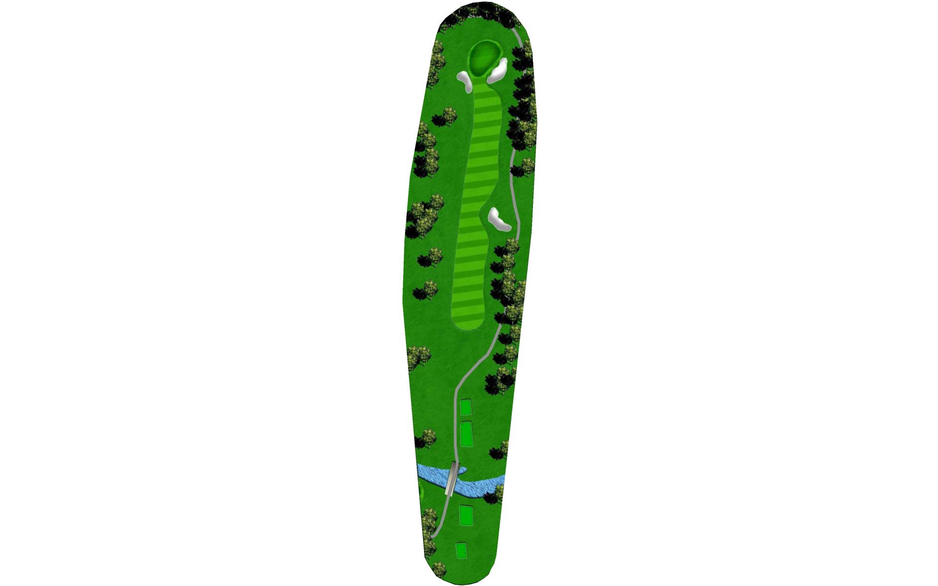 This is a fun par 4 with a creek that cuts across the fairway. Depending on the players ability, opting for a 3-wood or long iron off the tee may be in your best interest to avoid the penalty area. Off the tee, left has more room for the ball to stay dry. Best to go for the center of the green on your approach shot, as water on the left and bunkers on the right can make for a small target!