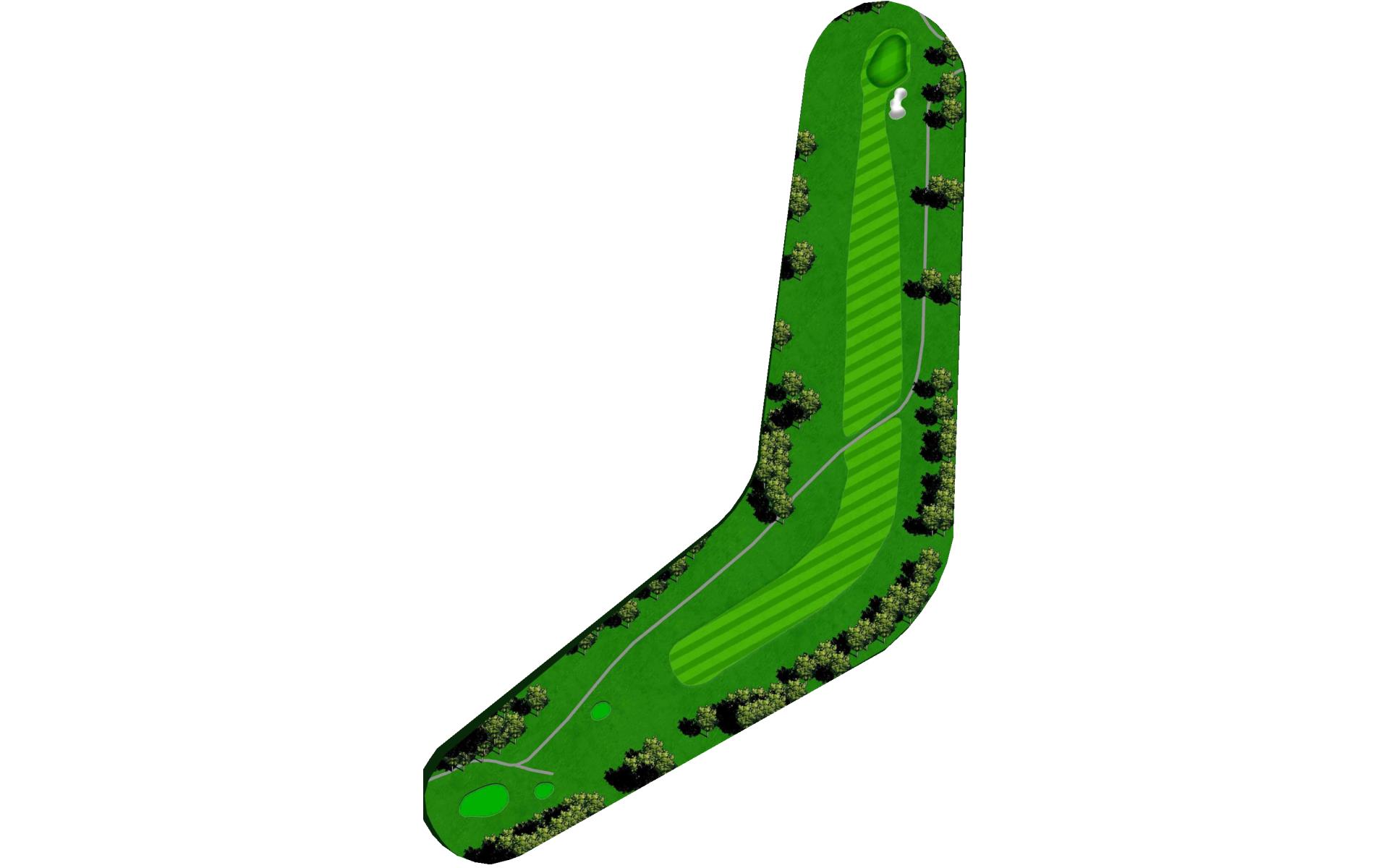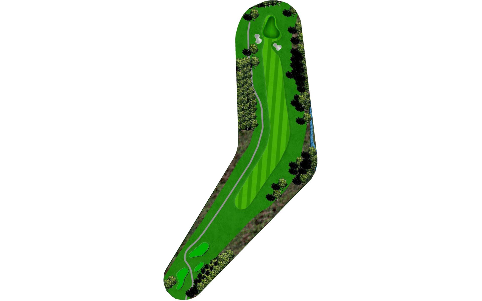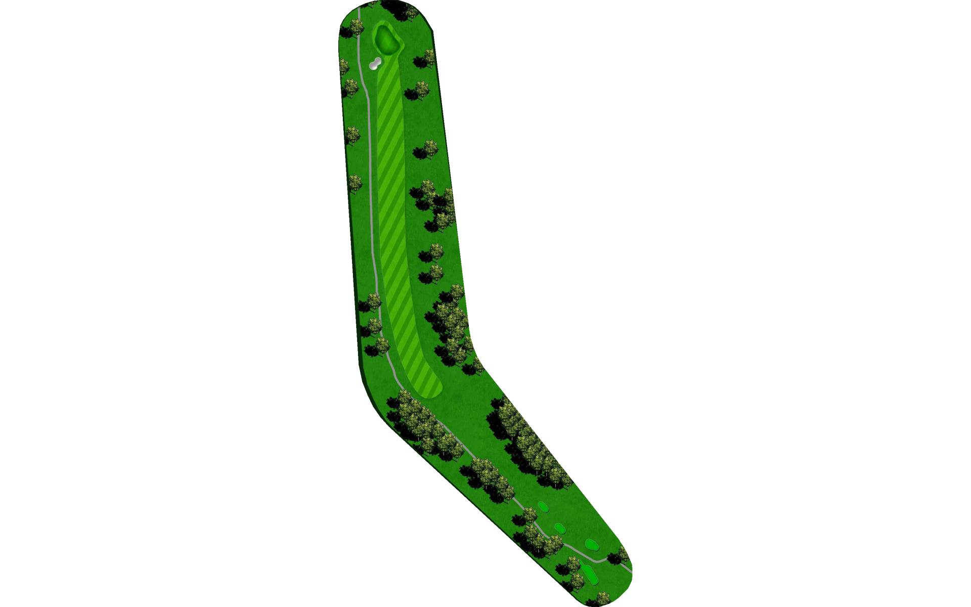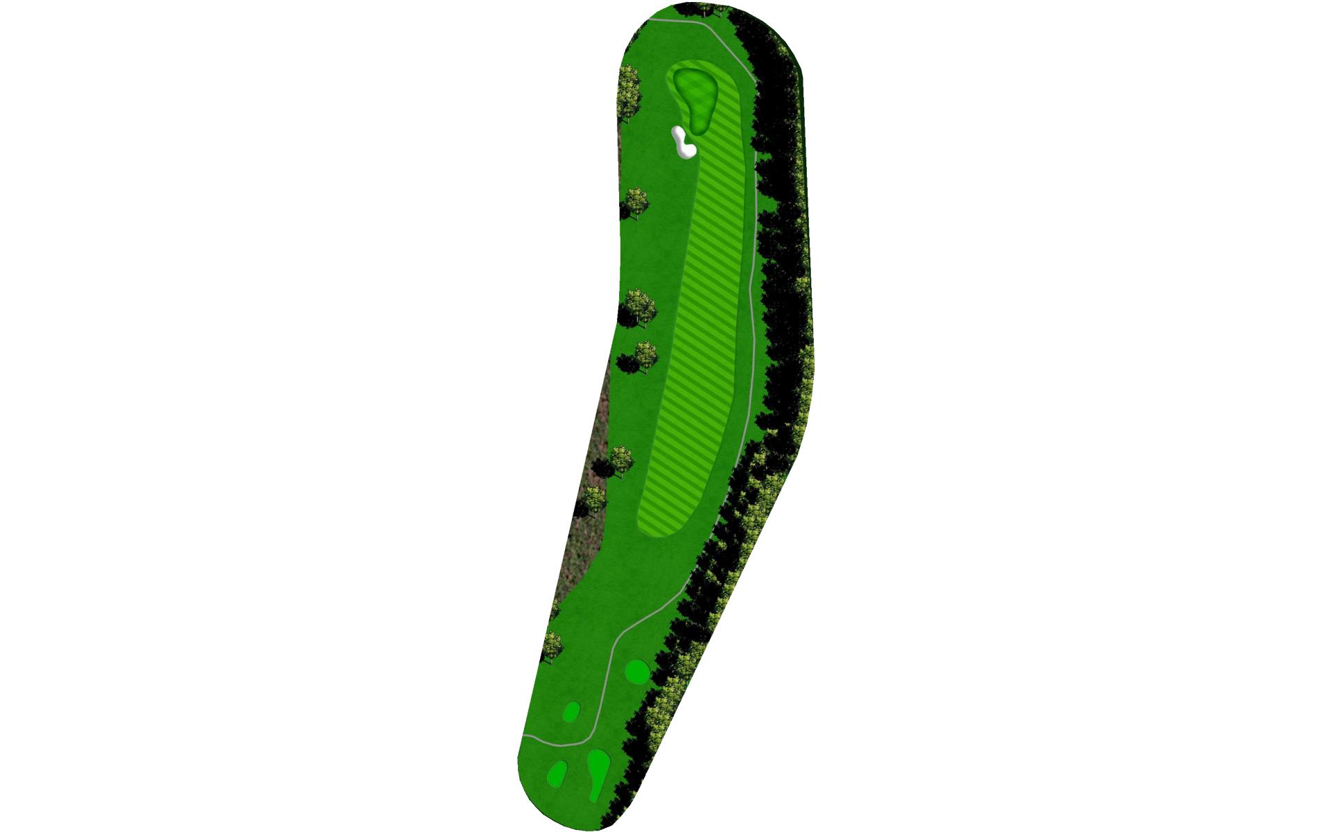 This dogleg left allows a bold player to cut the corner. Playing safe will leave a lengthy iron to a long, kidney-shaped green.