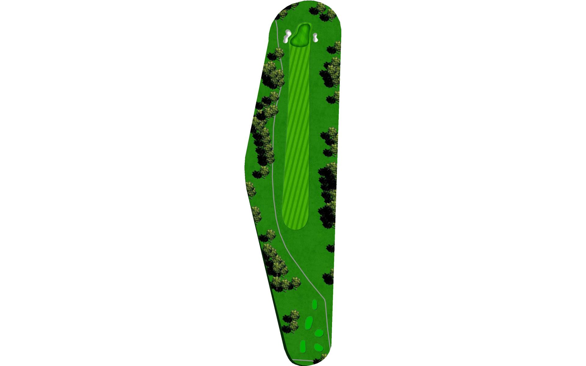 This hole usually plays into a right-to-left crosswind. The green slopes from back to front, making putts from above the hole will be a bit tricky.