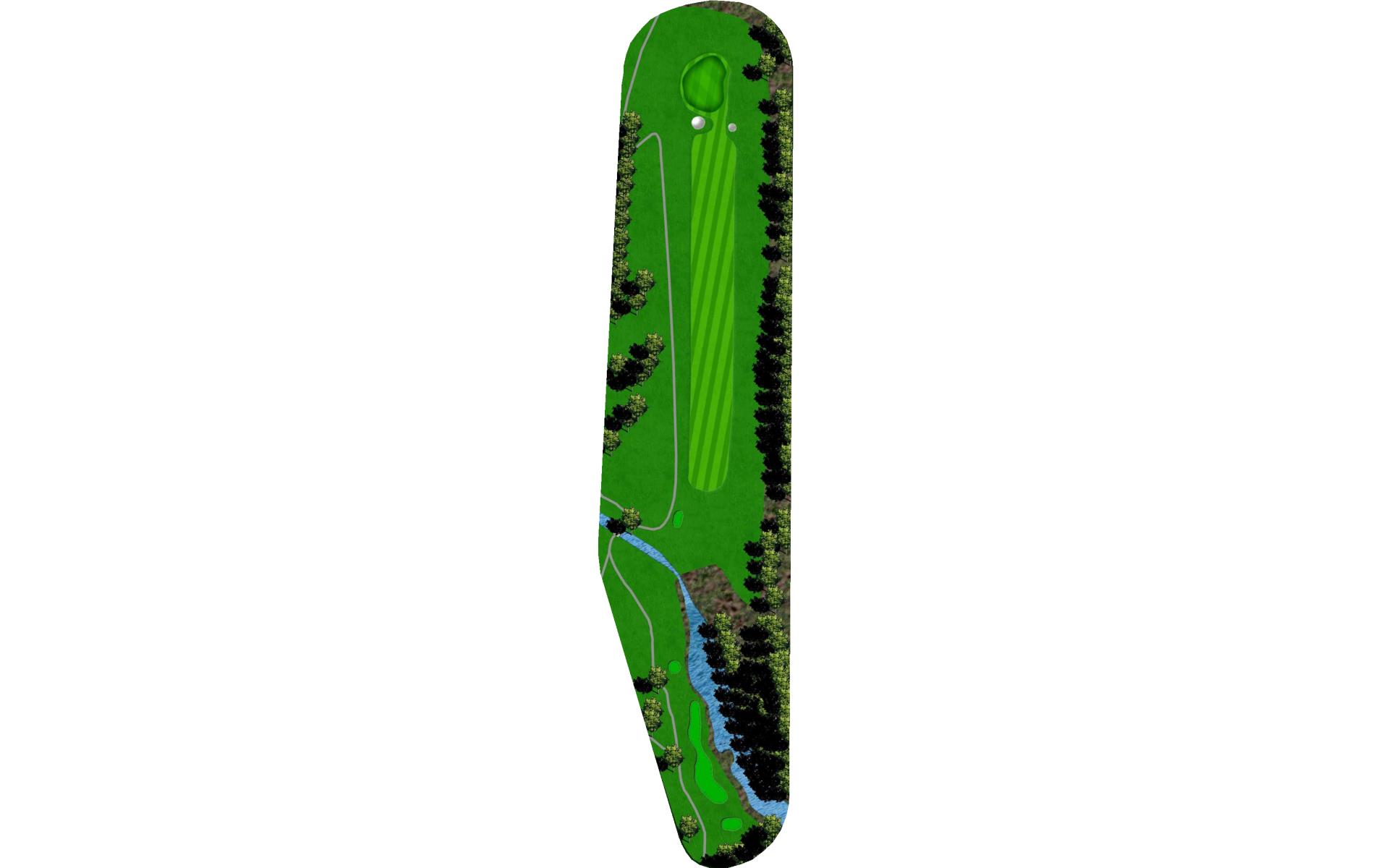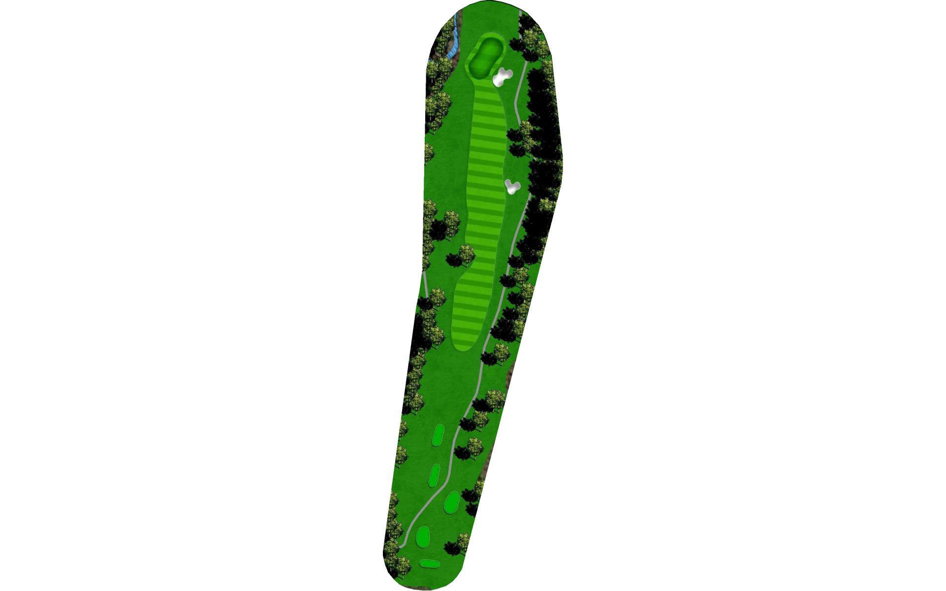 On this critical tee shot, avoid the trees left and the creek right that crosses into the middle of the fairway. Finding the right angle on the approach shot into this green is key. A long or mid iron is usually required to this deep green.