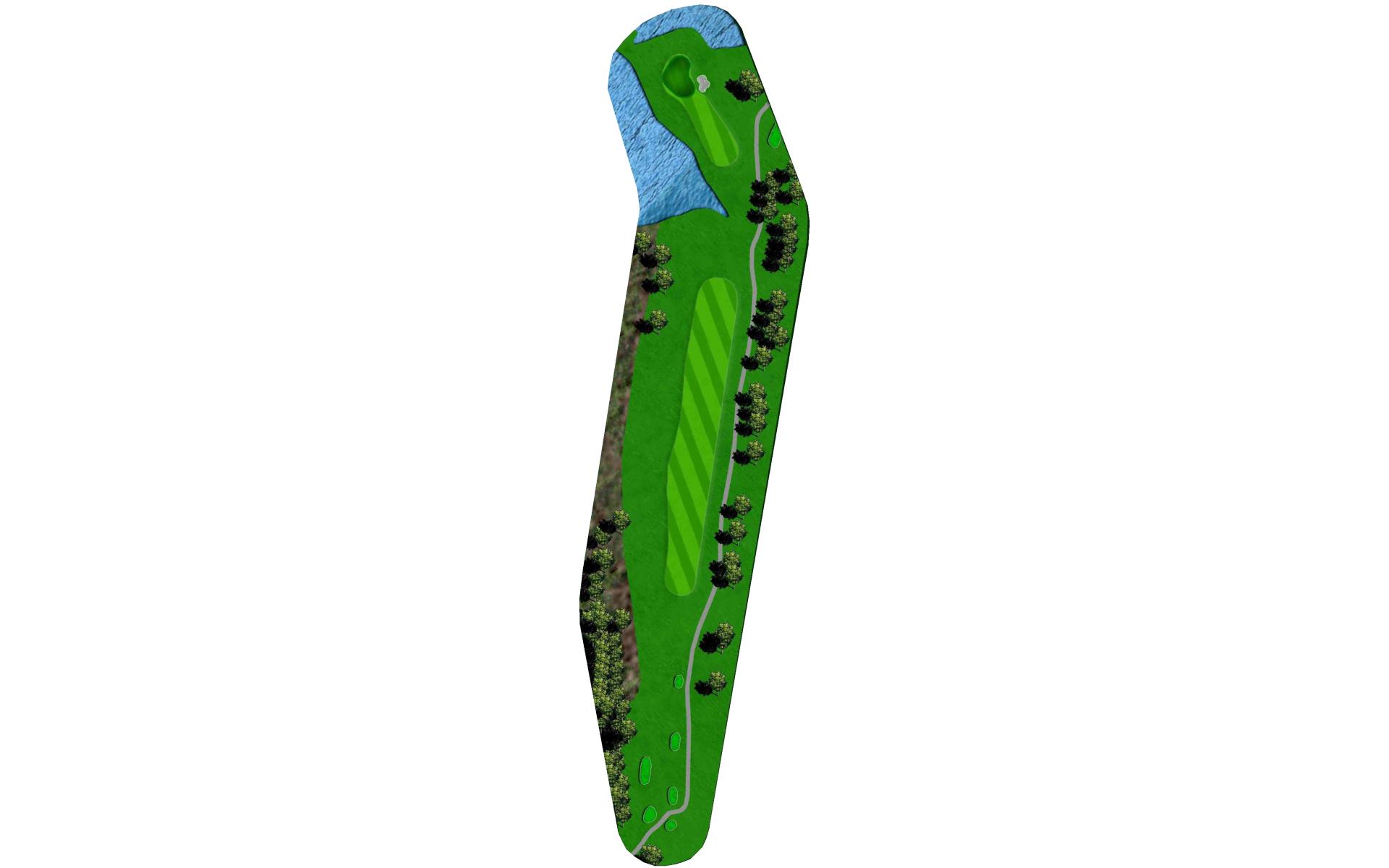 A good tee shot leaves two options; either lay up with a short iron or go for the green in two. Water left and over the right side of the green claims its share of errant shots. Once the ball is on the dance floor, the green slopes mainly back to front from the fairway angle.