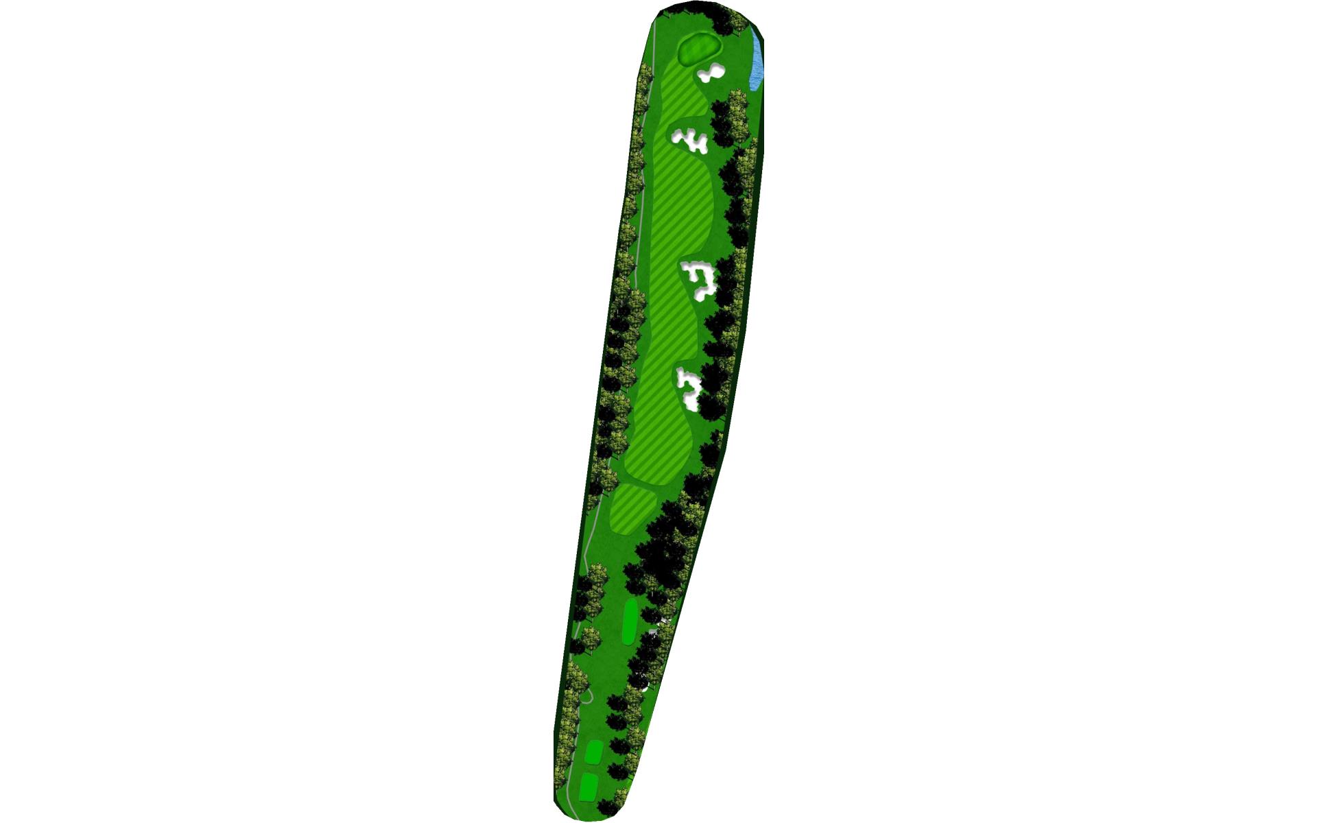 | A good drive down the left side will give you the best angle into this very narrow green. |