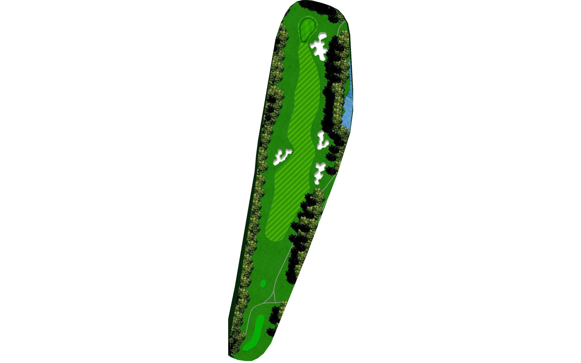 | The shortest par 3 on the course. Be careful of the wind above the treeline as it may push your ball into the water right or bunkers left. |