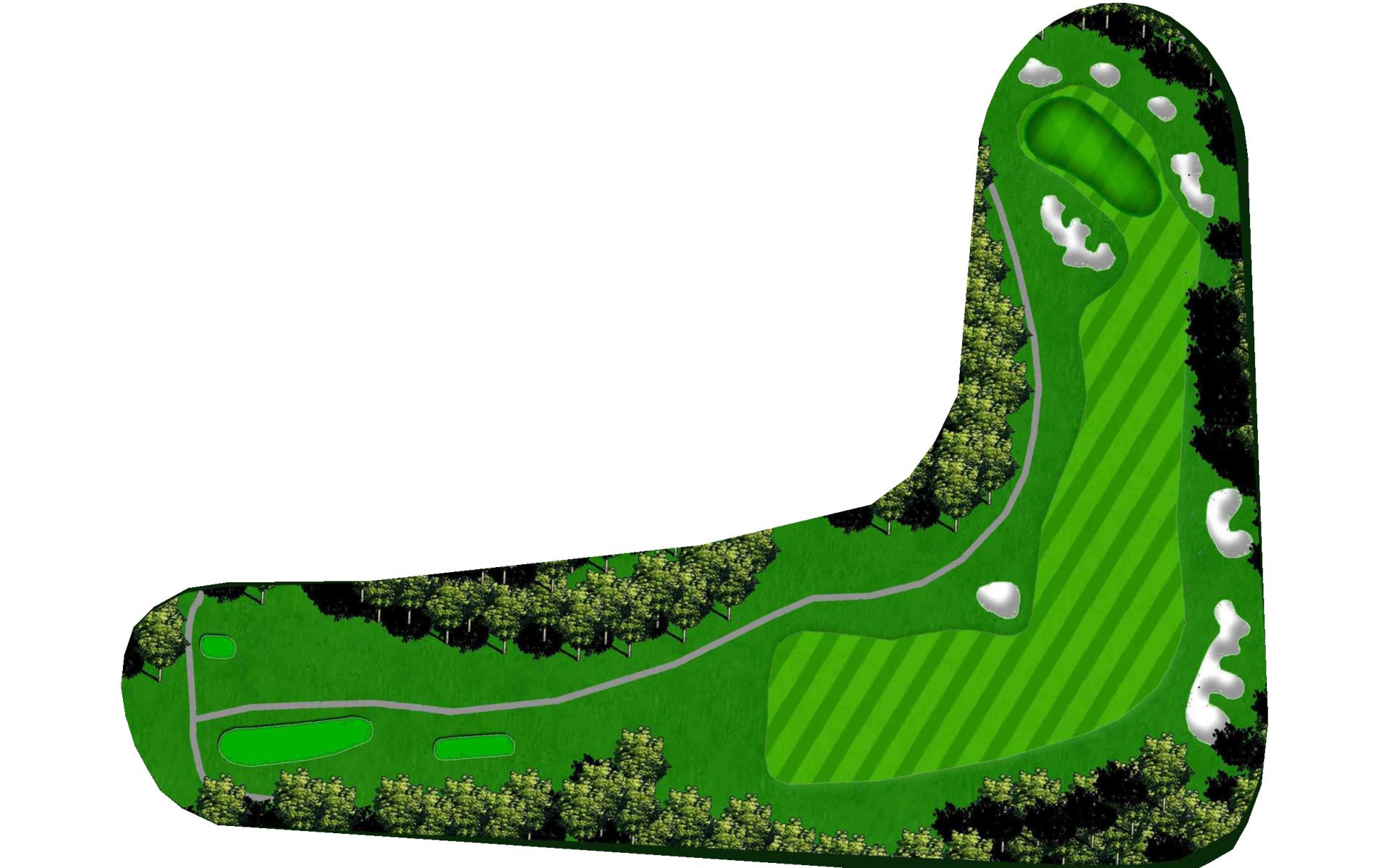 | This sharp dogleg left will require two extra clubs into the green due to a large elevation change to the three-tiered green. |