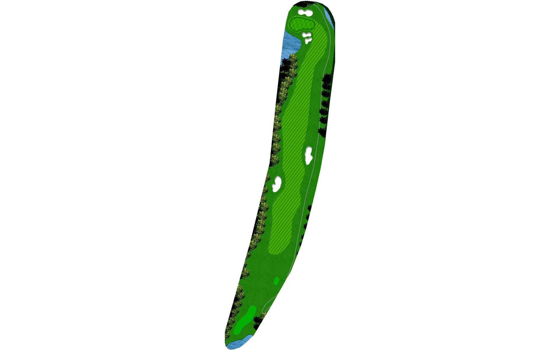 | This short par 4 is a great risk/reward hole, with water right and out of bounds left. A good approach shot will lead to a great score. |