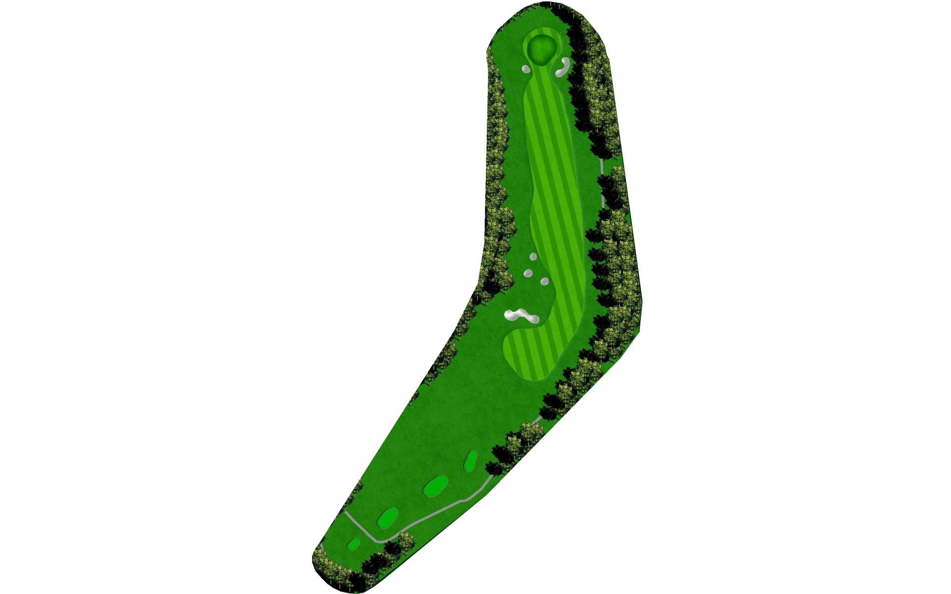 A straight away par 3 with plenty of length. This hole requires a well struck long iron, with bunkers surrounding the green. The green is relatively flat, so an easy pitch or putt would be well within reach.
